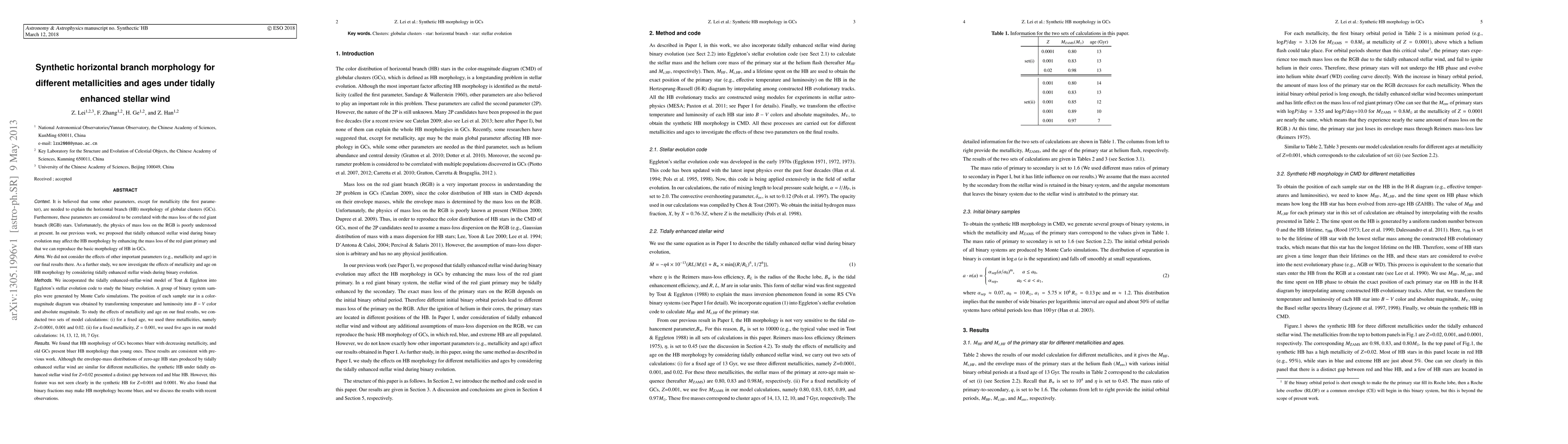 It is believed that, except for metallicity, some other parameters are needed to explain the horizontal branch (HB) morphology of globular clusters (GCs). Furthermore, these parameters are considered to be correlated with the mass loss of the red giant branch (RGB) stars. In our previous work, we proposed that tidally enhanced stellar wind during binary evolution may affect the HB morphology by enhancing the mass loss of the red giant primary. As a further study, we now investigate the effects of metallicity and age on HB morphology by considering tidally enhanced stellar winds during binary evolution. We incorporated the tidally enhanced-stellar-wind model into Eggleton's stellar evolution code to study the binary evolution. To study the effects of metallicity and age on our final results, we conducted two sets of model calculations: (i) for a fixed age, we used three metallicities, namely Z=0.0001, 0.001, and 0.02. (ii) For a fixed metallicity, Z=0.001, we used five ages in our model calculations: 14, 13, 12, 10, and 7 Gyr. We found that HB morphology of GCs becomes bluer with decreasing metallicity, and old GCs present bluer HB morphology than young ones. These results are consistent with previous work. Although the envelope-mass distributions of zero-age HB stars produced by tidally enhanced stellar wind are similar for different metallicities, the synthetic HB under tidally enhanced stellar wind for Z=0.02 presented a distinct gap between red and blue HB. However, this feature was not seen clearly in the synthetic HB for Z=0.001 and 0.0001. We also found that higher binary fractions may make HB morphology become bluer, and we discussed the results with recent observations.