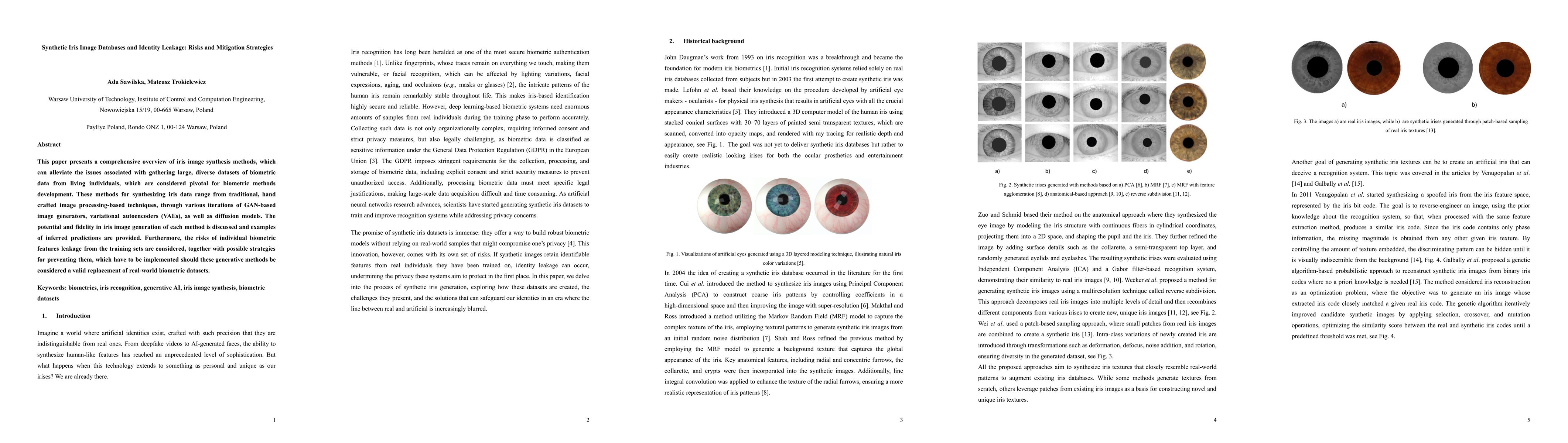 The paper offers an in-depth analysis of various iris image synthesis techniques, providing insights into their strengths and weaknesses for biometric research purposes.