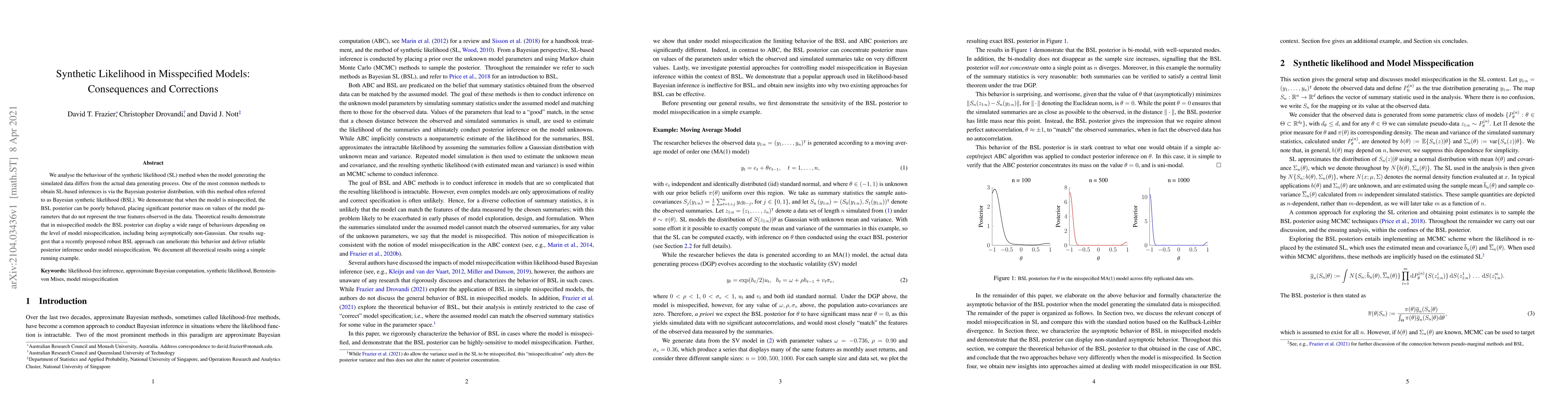 A research paper examines how synthetic likelihood methods can produce poor results when the model is misspecified, but proposes a robust approach to improve reliability under such conditions.