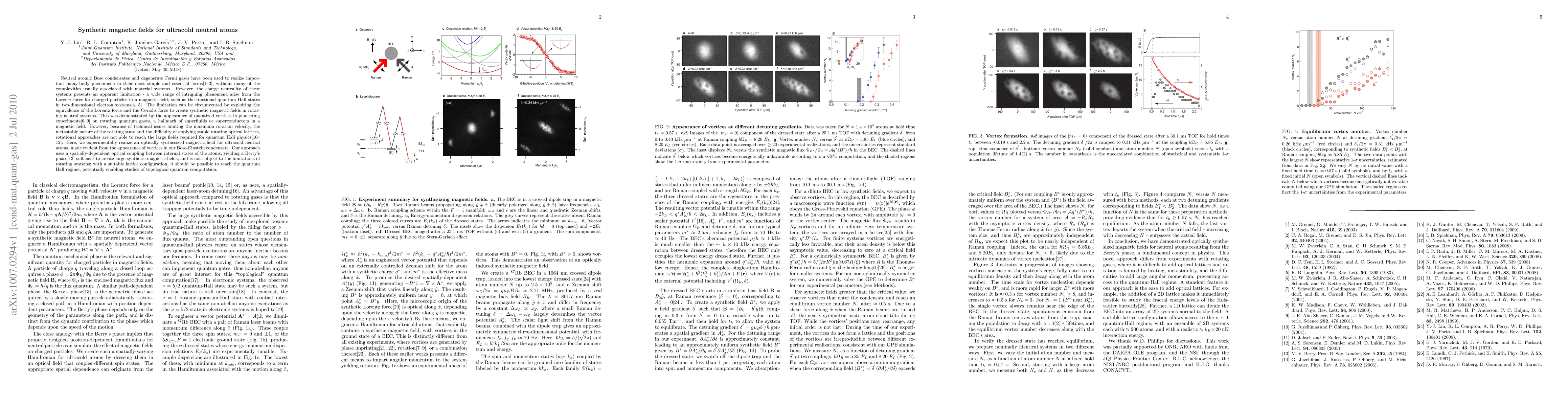 This paper demonstrates the creation of synthetic magnetic fields in ultracold neutral atoms using a spatially-dependent optical coupling, enabling the observation of quantized vortices in a Bose-Einstein condensate. This method overcomes the limitations of rotational approaches, potentially allowing for the study of quantum Hall physics and topological quantum computation.