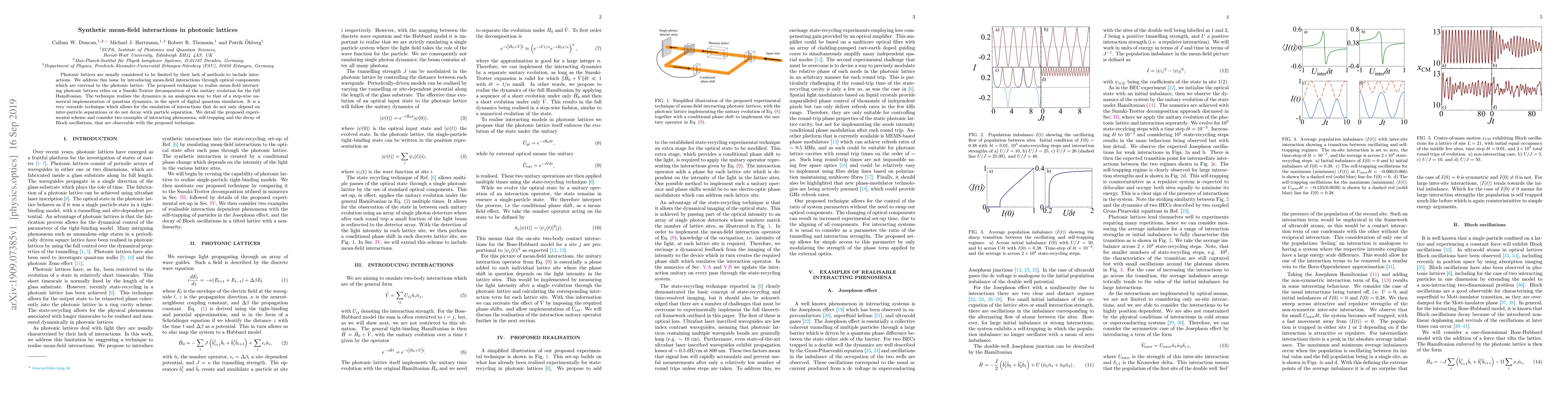 This paper introduces a method to introduce mean-field interactions in photonic lattices using external optical components, enabling emulation of complex interactions beyond simple inter-particle separations. The technique is versatile and allows for observing phenomena like self-trapping and Bloch oscillations decay.