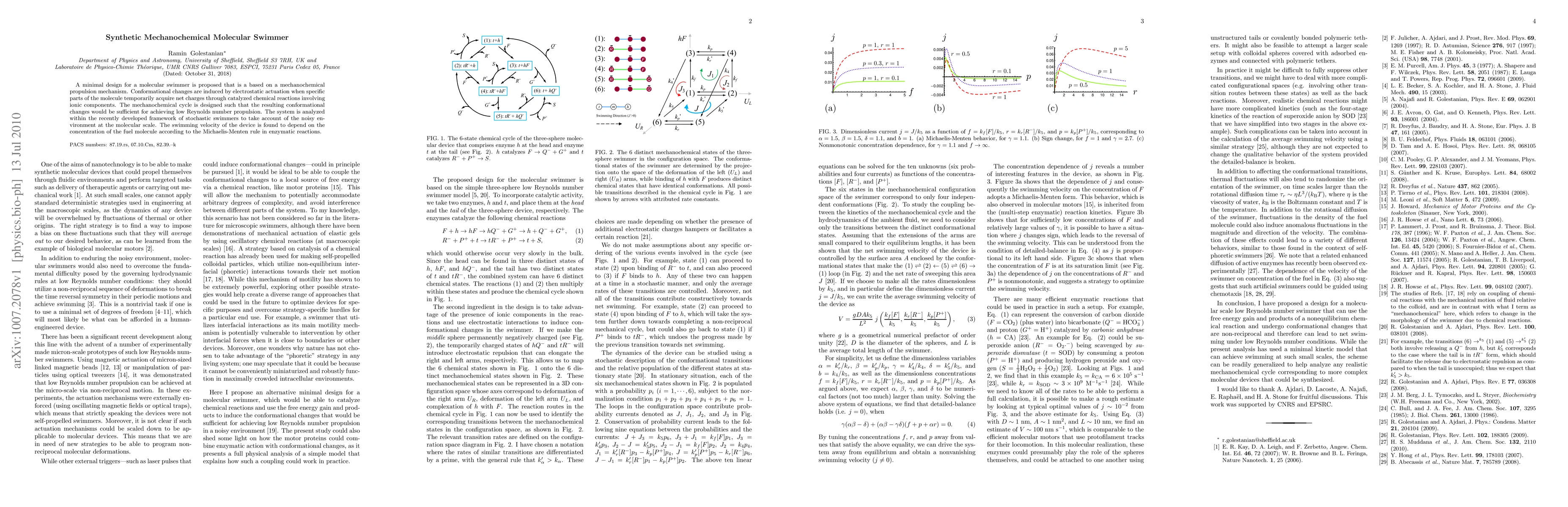 A molecular-scale swimmer was designed using a mechanochemical cycle that involves a one-equilibrium chemical reaction.