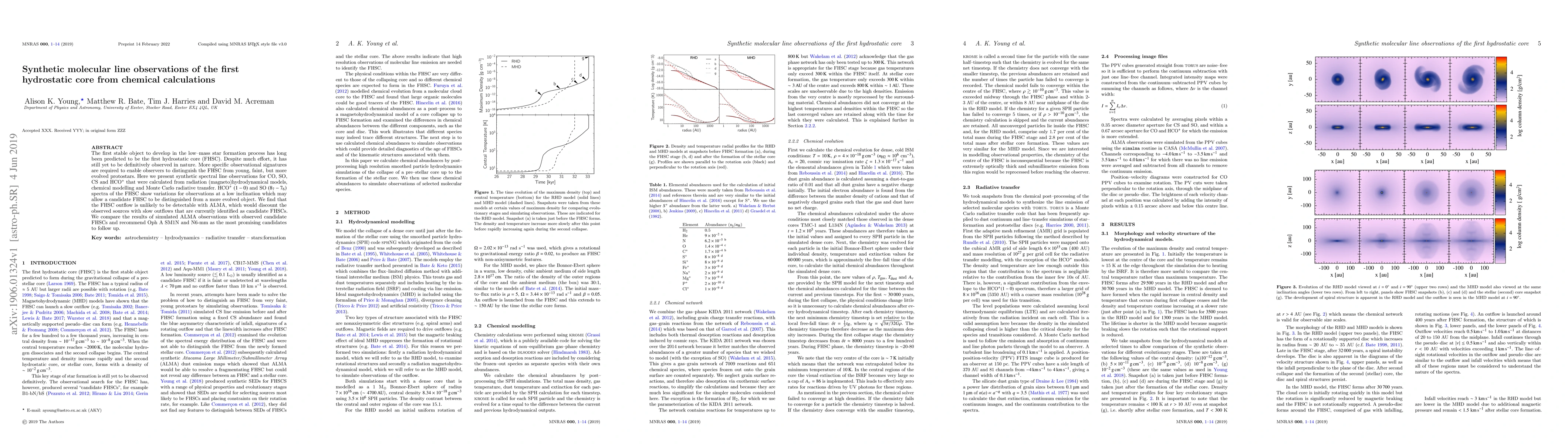 The first stable object to develop in the low-mass star formation process has long been predicted to be the first hydrostatic core (FHSC). Despite much effort, it has still yet to be definitively observed in nature. More specific observational signatures are required to enable observers to distinguish the FHSC from young, faint, but more evolved protostars. Here we present synthetic spectral line observations for CO, SO, CS and HCO$^+$ that were calculated from radiation (magneto)hydrodynamical models, chemical modelling and Monte Carlo radiative transfer. HCO$^+$ $(1-0)$ and SO $(8_7 - 7_6)$ spectra of the FHSC show variations for observations at a low inclination which may allow a candidate FHSC to be distinguished from a more evolved object. We find that the FHSC outflow is unlikely to be detectable with ALMA, which would discount the observed sources with slow outflows that are currently identified as candidate FHSCs. We compare the results of simulated ALMA observations with observed candidate FHSCs and recommend Oph A SM1N and N6-mm as the most promising candidates to follow up.