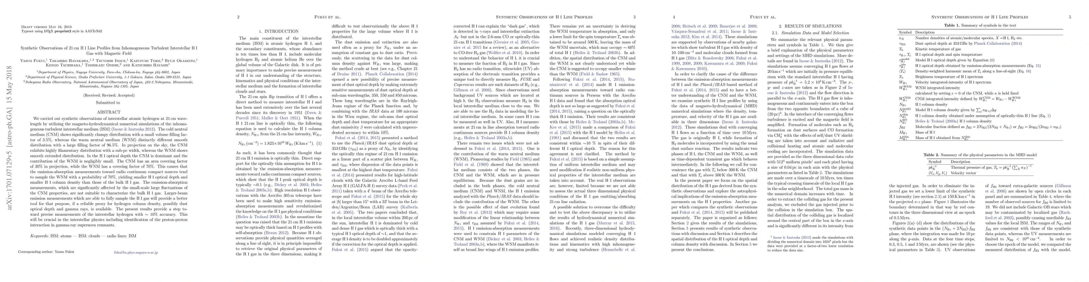 This paper synthesizes observations of 21cm HI line profiles from turbulent interstellar gas using magneto-hydrodynamical simulations. It finds that the cold neutral medium (CNM) is clumpy and filamentary, while the warm neutral medium (WNM) is smooth and extended, leading to emission-absorption measurements that undersample the CNM and overestimate the HI column density.