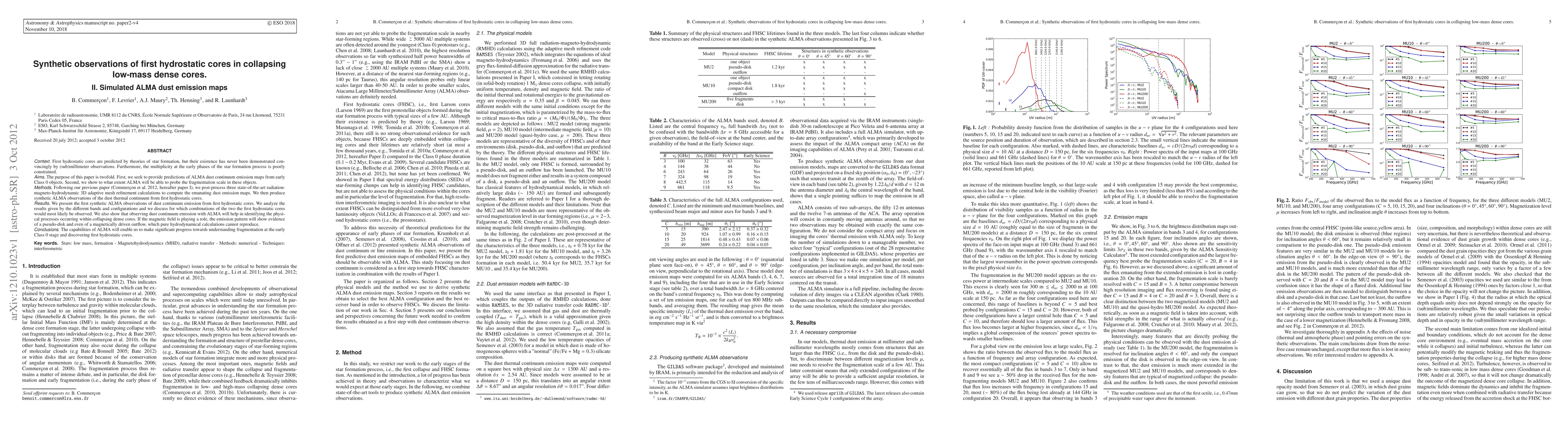 First hydrostatic cores are predicted by theories of star formation, but their existence has never been demonstrated convincingly by (sub)millimeter observations. Furthermore, the multiplicity at the early phases of the star formation process is poorly constrained. The purpose of this paper is twofold. First, we seek to provide predictions of ALMA dust continuum emission maps from early Class 0 objects. Second, we show to what extent ALMA will be able to probe the fragmentation scale in these objects. Following our previous paper (Commer\c{c}on et al. 2012, hereafter paper I), we post-process three state-of-the-art radiation-magneto-hydrodynamic 3D adaptive mesh refinement calculations to compute the emanating dust emission maps. We then produce synthetic ALMA observations of the dust thermal continuum from first hydrostatic cores. We present the first synthetic ALMA observations of dust continuum emission from first hydrostatic cores. We analyze the results given by the different bands and configurations and we discuss for which combinations of the two the first hydrostatic cores would most likely be observed. We also show that observing dust continuum emission with ALMA will help in identifying the physical processes occurring within collapsing dense cores. If the magnetic field is playing a role, the emission pattern will show evidence of a pseudo-disk and even of a magnetically driven outflow, which pure hydrodynamical calculations cannot reproduce. The capabilities of ALMA will enable us to make significant progress towards understanding fragmentation at the early Class 0 stage and discovering first hydrostatic cores.