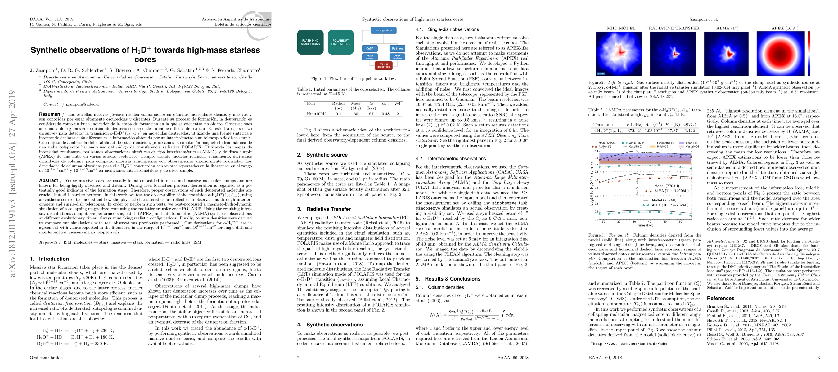 Young massive stars are usually found embedded in dense and massive molecular clumps and are known for being highly obscured and distant. During their formation process, deuteration is regarded as a potentially good indicator of the formation stage. Therefore, proper observations of such deuterated molecules are crucial, but still, hard to perform. In this work, we test the observability of the transition o-H$_2$D$^+(1_{10}$-$1_{11})$, using a synthetic source, to understand how the physical characteristics are reflected in observations through interferometers and single-dish telescopes. In order to perform such tests, we post-processed a magneto-hydrodynamic simulation of a collapsing magnetized core using the radiative transfer code POLARIS. Using the resulting intensity distributions as input, we performed single-dish (APEX) and interferometric (ALMA) synthetic observations at different evolutionary times, always mimicking realistic configurations. Finally, column densities were derived to compare our simulations with real observations previously performed. Our derivations for o-H$_2$D$^+$ are in agreement with values reported in the literature, in the range of 10$^{\!10-11}$cm$^{\!-2}$ and 10$^{\!12-13}$cm$^{\!-2}$ for single-dish and interferometric measurements, respectively.