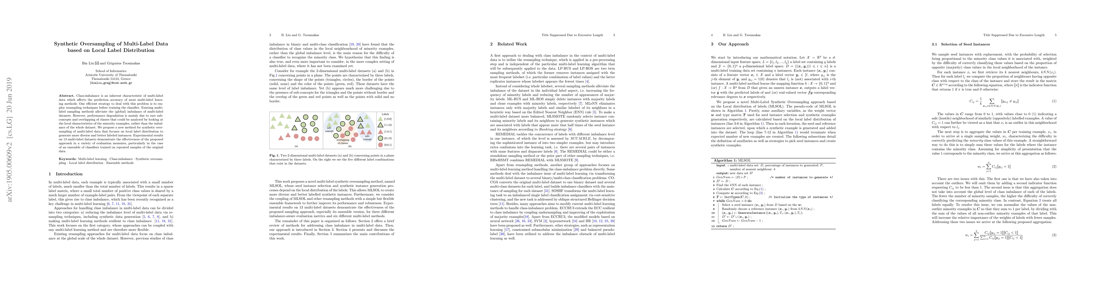 This paper proposes a synthetic oversampling method for multi-label data that focuses on local label distribution to generate more diverse instances, addressing performance degradation due to rare subconcepts and class overlap. Experimental results show improved prediction accuracy across various evaluation measures, especially when using ensemble classifiers trained on resampled data.
