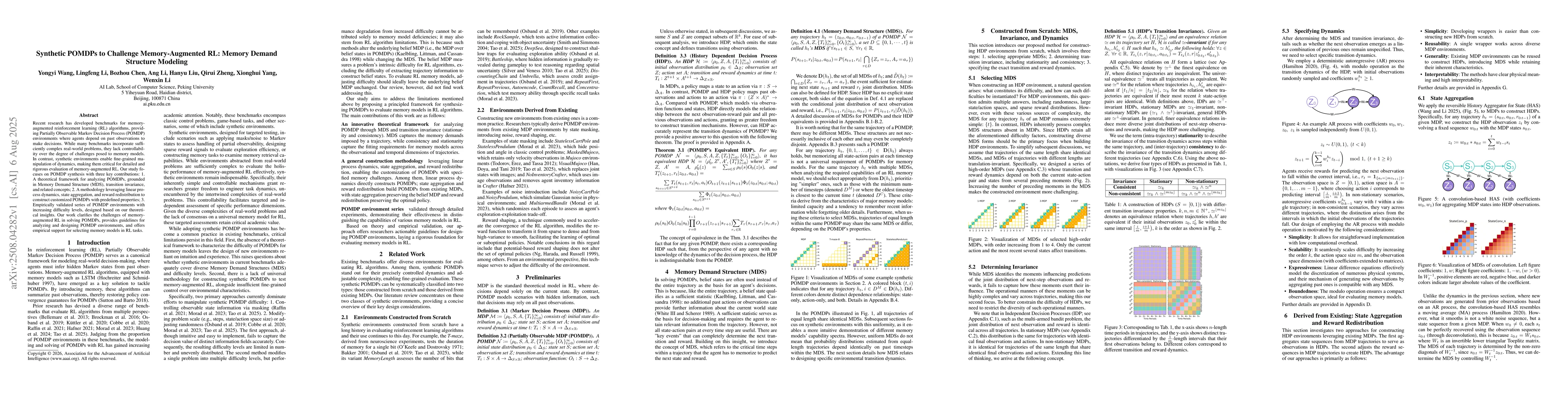 Recent research has developed benchmarks for memory-augmented reinforcement learning (RL) algorithms, providing Partially Observable Markov Decision Process (POMDP) environments where agents depend on past observations to make decisions. While many benchmarks incorporate sufficiently complex real-world problems, they lack controllability over the degree of challenges posed to memory models. In contrast, synthetic environments enable fine-grained manipulation of dynamics, making them critical for detailed and rigorous evaluation of memory-augmented RL. Our study focuses on POMDP synthesis with three key contributions: 1. A theoretical framework for analyzing POMDPs, grounded in Memory Demand Structure (MDS), transition invariance, and related concepts; 2. A methodology leveraging linear process dynamics, state aggregation, and reward redistribution to construct customized POMDPs with predefined properties; 3. Empirically validated series of POMDP environments with increasing difficulty levels, designed based on our theoretical insights. Our work clarifies the challenges of memory-augmented RL in solving POMDPs, provides guidelines for analyzing and designing POMDP environments, and offers empirical support for selecting memory models in RL tasks.