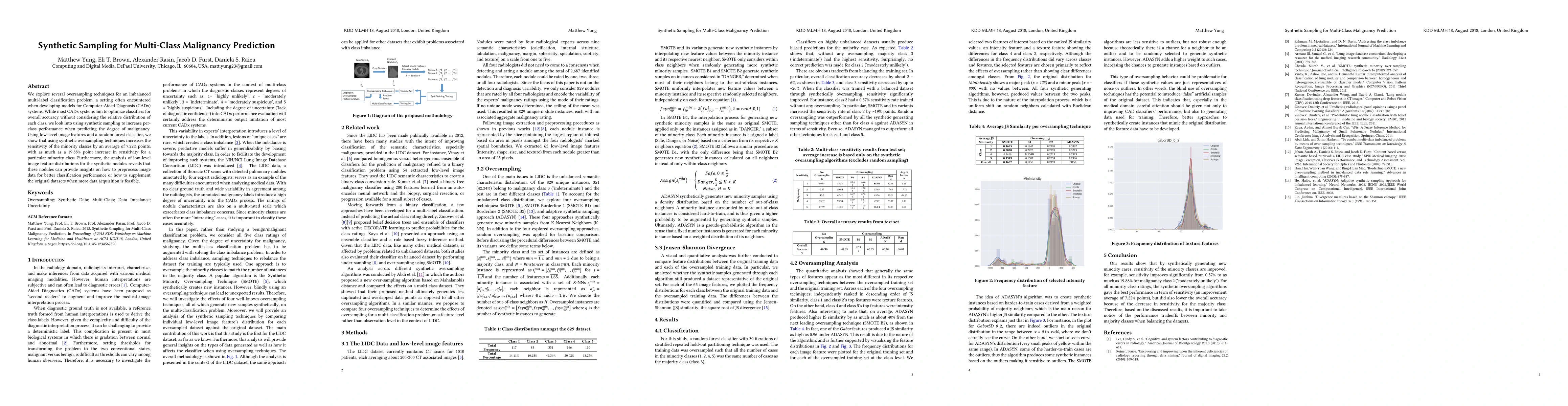 This paper investigates synthetic sampling techniques to improve multi-class malignancy prediction in Computer-Aided Diagnosis systems, showing a 7.22% average increase in sensitivity for minority classes. The study also highlights how synthetic nodules can inform better preprocessing and dataset augmentation strategies.