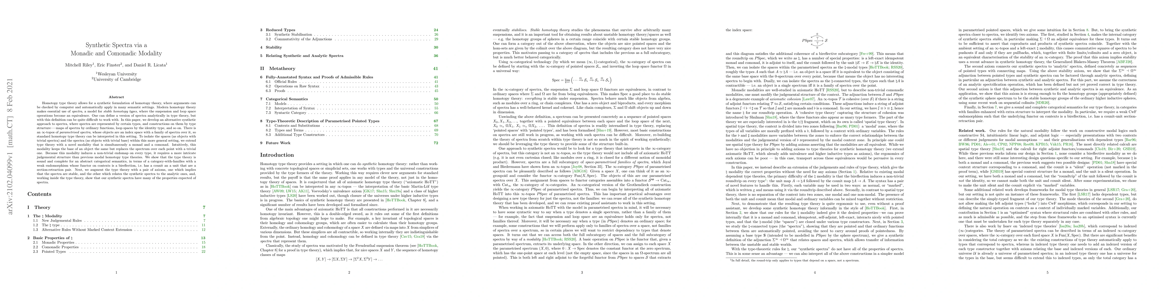 We extend Homotopy Type Theory with a novel modality that is simultaneously a monad and a comonad. Because this modality induces a non-trivial endomap on every type, it requires a more intricate judgemental structure than previous modal extensions of Homotopy Type Theory. We use this theory to develop an synthetic approach to spectra, where spectra are represented by certain types, and constructions on them by type structure: maps of spectra by ordinary functions, loop spaces by the identity type, and so on. We augment the type theory with a pair of axioms, one which implies that the spectra are stable, and the other which relates synthetic spectra to the ordinary definition of spectra in type theory as $\Omega$-spectra. Finally, we show that the type theory is sound and complete for an abstract categorical semantics, in terms of a category-with-families with a weak endomorphism whose functor on contexts is a bireflection, i.e. has a counit an a unit that are a section-retraction pair.