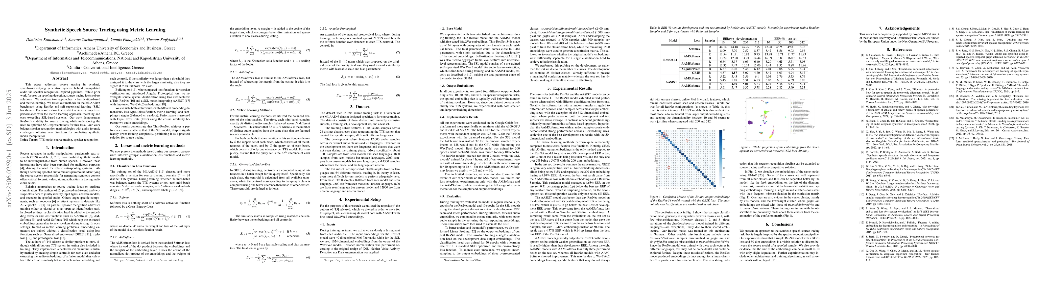 This work bridges speaker recognition methodologies with audio forensic challenges, offering new directions for combating synthetic media manipulation.