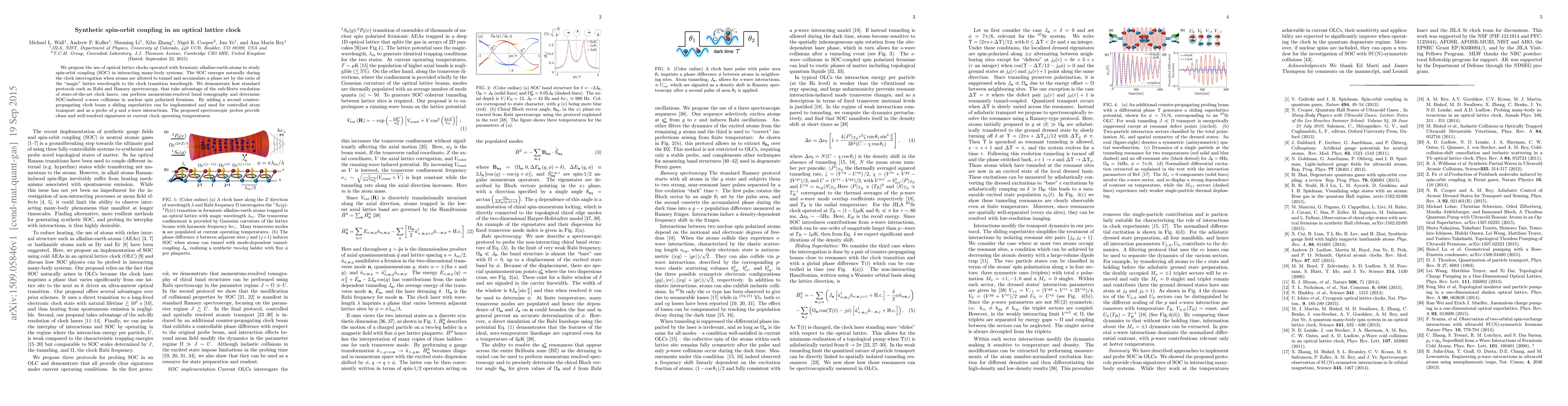 This paper proposes using optical lattice clocks with fermionic alkaline-earth atoms to study synthetic spin-orbit coupling in many-body systems. It demonstrates how spectroscopic techniques can determine spin-orbit coupling-induced interactions and enable controlled atom transport via a sliding superlattice.