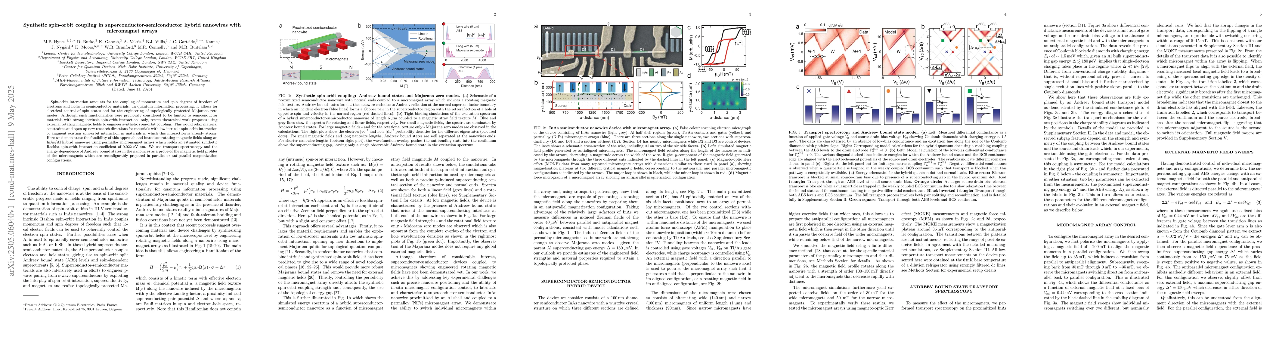 Researchers created hybrid nanowires with micromagnet arrays to generate synthetic spin-orbit coupling in semiconductor materials, enabling electrical control of spin states and potential Majorana zero modes. They successfully demonstrated this approach using an InAs/Al nanowire and reported a synthetic Rashba spin-orbit interaction coefficient.