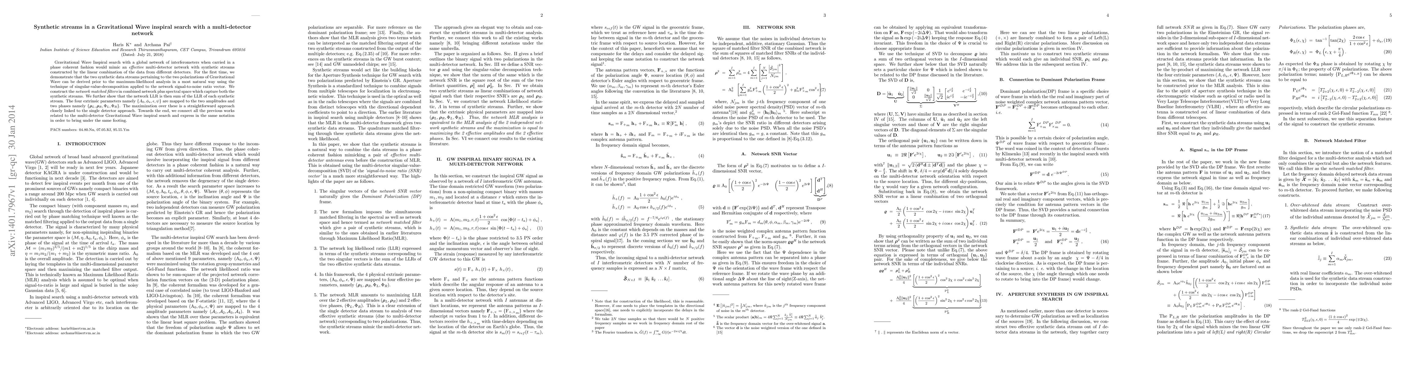 Gravitational Wave Inspiral search with a global network of interferometers when carried in a phase coherent fashion would mimic an effective multi-detector network with synthetic streams constructed by the linear combination of the data from different detectors. For the first time, we demonstrate that the two synthetic data streams pertaining to the two polarizations of Gravitational Wave can be derived prior to the maximum-likelihood analysis in a most natural way using the technique of singular-value-decomposition applied to the network signal-to-noise ratio vector. We construct the network matched filters in combined network plus spectral space which capture both the synthetic streams. We further show that the network LLR is then sum of the LLR of each synthetic stream. The four extrinsic parameters are mapped to the two amplitudes and two phases. The maximization over these is a straightforward approach closely linked to the single detector approach. Towards the end, we connect all the previous works related to the multi-detector Gravitational Wave inspiral search and express in the same notation in order to bring under the same footing.