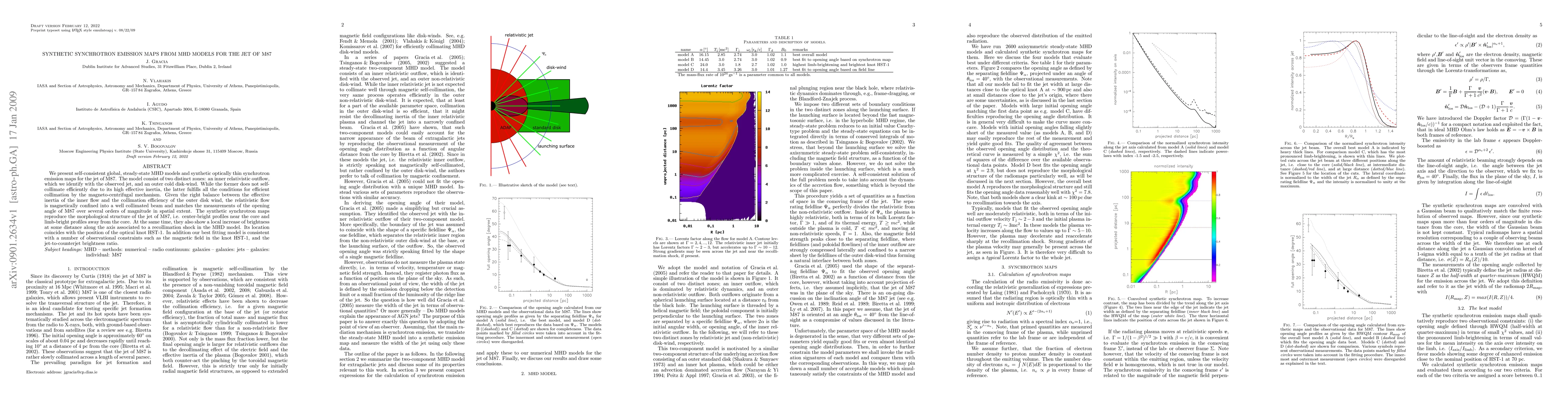 This paper presents global MHD models for the M87 jet, showing how a relativistic outflow and a surrounding cold disk-wind can efficiently collimate and match observational data, including the jet's opening angle and synchrotron emission maps that reproduce the jet's morphology and the location of the optical knot HST-1.