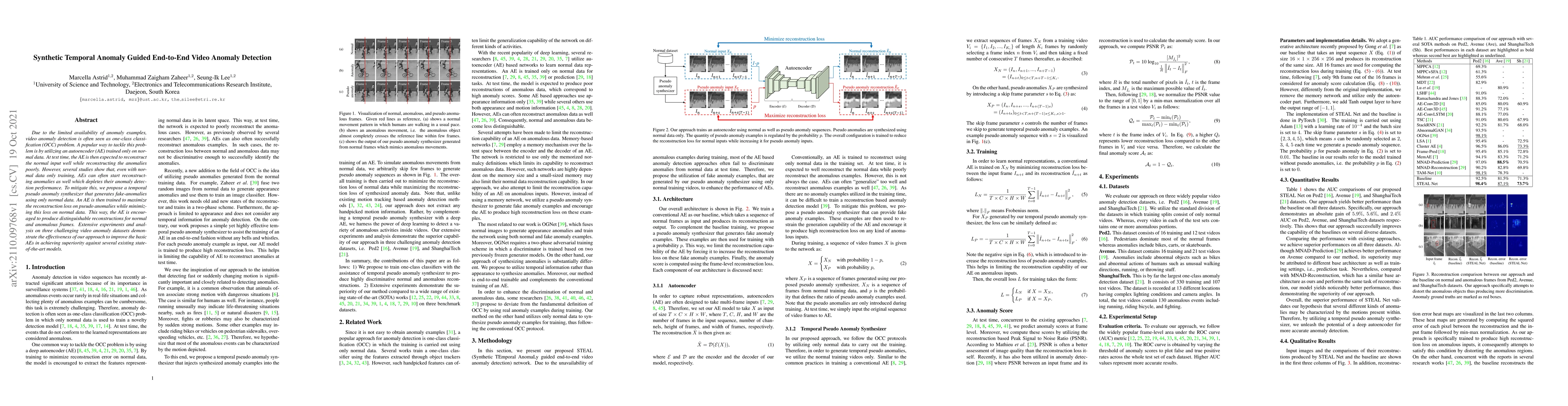 This paper proposes a method to enhance video anomaly detection using synthetic temporal anomalies generated from normal data to improve autoencoder training. The autoencoder is trained to distinguish between normal and synthetic anomalous reconstructions, leading to better anomaly detection performance compared to existing state-of-the-art models.