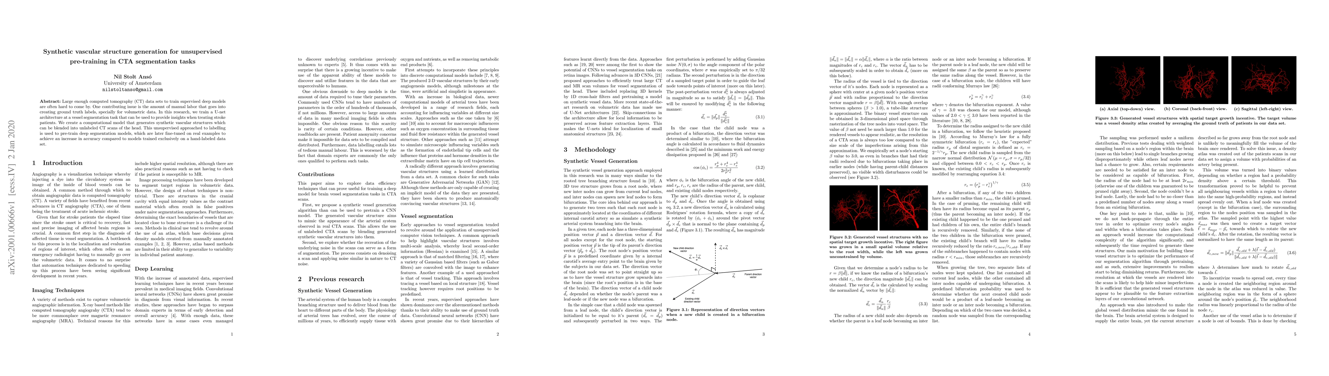 Researchers developed a method to generate synthetic vascular structures for unsupervised pre-training of deep learning models in CT scan segmentation tasks, reducing manual labeling needs.