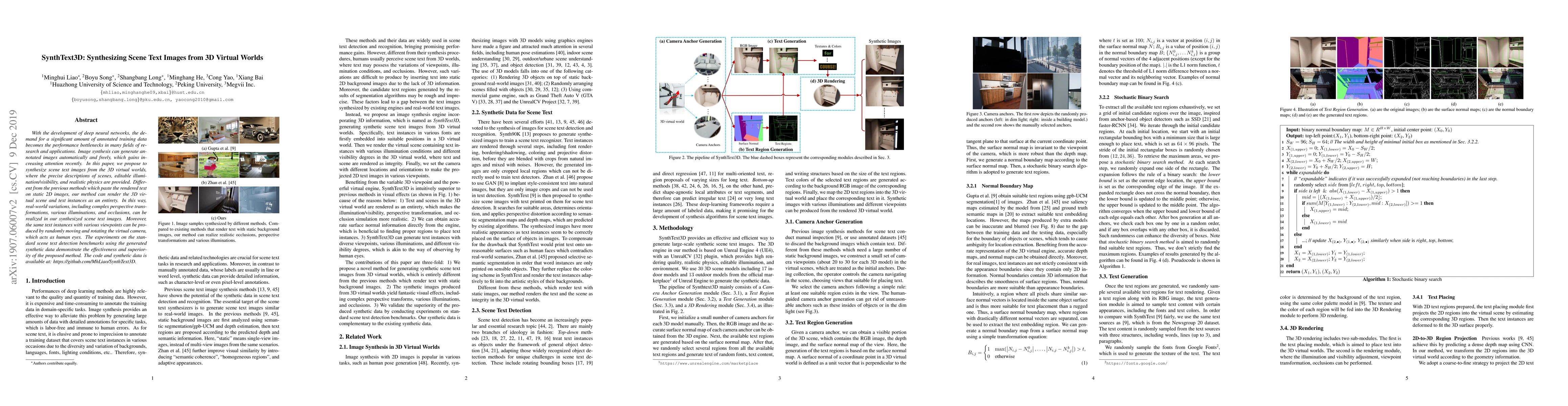 With the development of deep neural networks, the demand for a significant amount of annotated training data becomes the performance bottlenecks in many fields of research and applications. Image synthesis can generate annotated images automatically and freely, which gains increasing attention recently. In this paper, we propose to synthesize scene text images from the 3D virtual worlds, where the precise descriptions of scenes, editable illumination/visibility, and realistic physics are provided. Different from the previous methods which paste the rendered text on static 2D images, our method can render the 3D virtual scene and text instances as an entirety. In this way, real-world variations, including complex perspective transformations, various illuminations, and occlusions, can be realized in our synthesized scene text images. Moreover, the same text instances with various viewpoints can be produced by randomly moving and rotating the virtual camera, which acts as human eyes. The experiments on the standard scene text detection benchmarks using the generated synthetic data demonstrate the effectiveness and superiority of the proposed method. The code and synthetic data is available at: https://github.com/MhLiao/SynthText3D