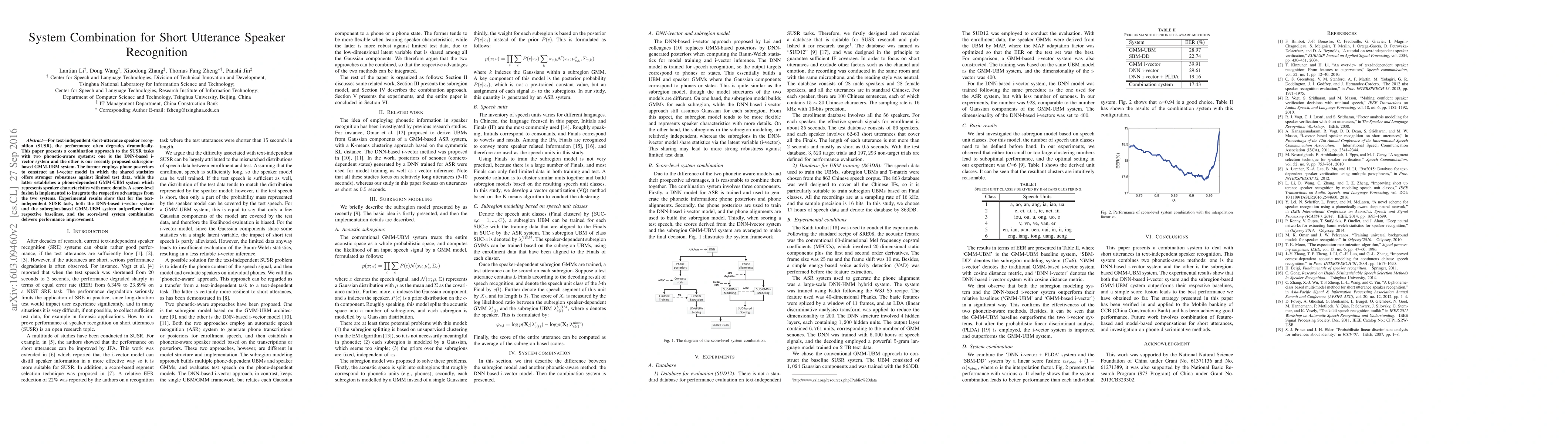 This paper proposes a system combination approach for text-independent short-utterance speaker recognition using two phonetic-aware systems: a DNN-based i-vector system and a subregion-based GMM-UBM system. The score-level fusion of these systems demonstrates improved performance over individual models.