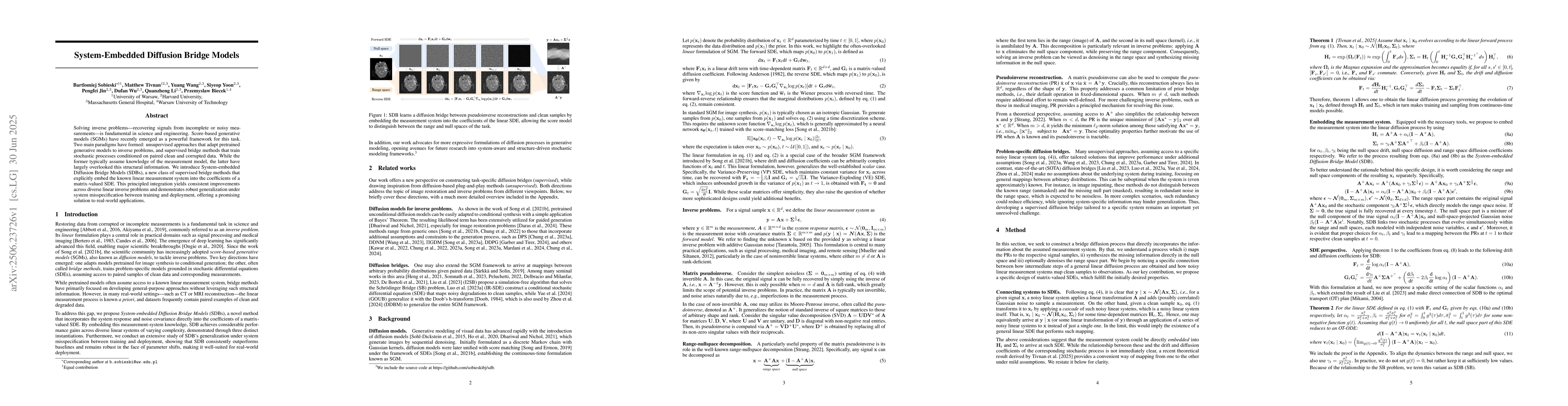 Solving inverse problems -- recovering signals from incomplete or noisy measurements -- is fundamental in science and engineering. Score-based generative models (SGMs) have recently emerged as a powerful framework for this task. Two main paradigms have formed: unsupervised approaches that adapt pretrained generative models to inverse problems, and supervised bridge methods that train stochastic processes conditioned on paired clean and corrupted data. While the former typically assume knowledge of the measurement model, the latter have largely overlooked this structural information. We introduce System embedded Diffusion Bridge Models (SDBs), a new class of supervised bridge methods that explicitly embed the known linear measurement system into the coefficients of a matrix-valued SDE. This principled integration yields consistent improvements across diverse linear inverse problems and demonstrates robust generalization under system misspecification between training and deployment, offering a promising solution to real-world applications.