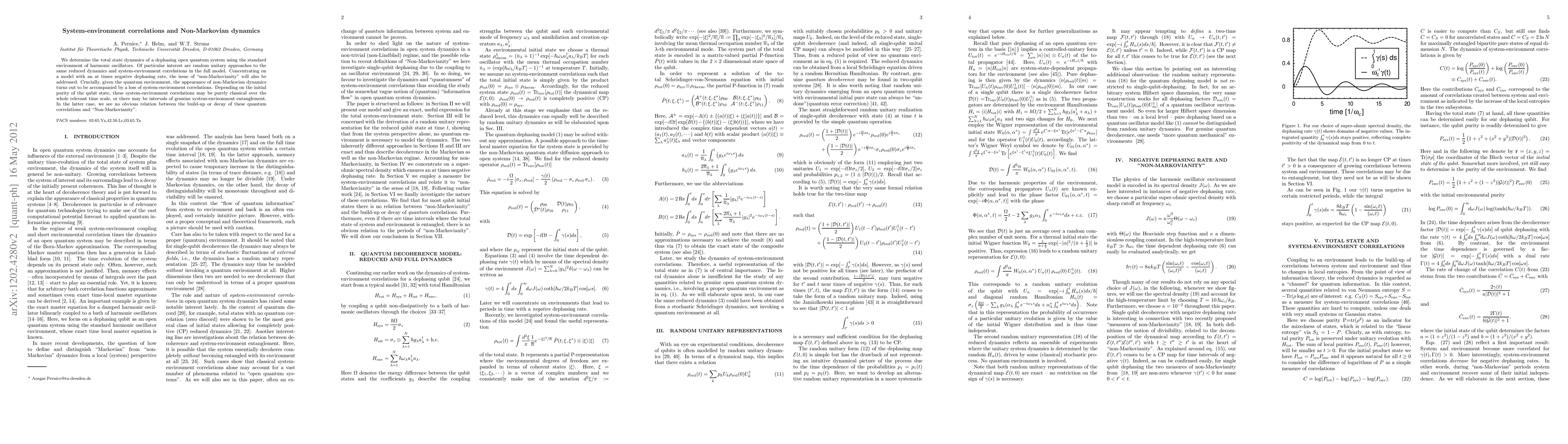 We determine the total state dynamics of a dephasing open quantum system using the standard environment of harmonic oscillators. Of particular interest are random unitary approaches to the same reduced dynamics and system-environment correlations in the full model. Concentrating on a model with an at times negative dephasing rate, the issue of "non-Markovianity" will also be addressed. Crucially, given the quantum environment, the appearance of non-Markovian dynamics turns out to be accompanied by a loss of system-environment correlations. Depending on the initial purity of the qubit state, these system-environment correlations may be purely classical over the whole relevant time scale, or there may be intervals of genuine system-environment entanglement. In the latter case, we see no obvious relation between the build-up or decay of these quantum correlations and "Non-Markovianity".