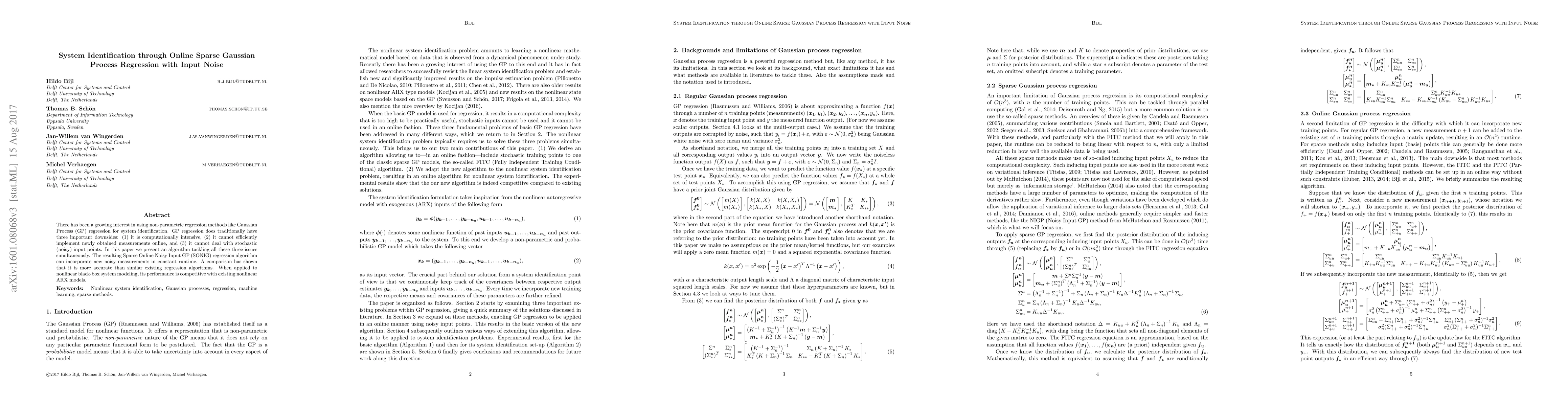 There has been a growing interest in using non-parametric regression methods like Gaussian Process (GP) regression for system identification. GP regression does traditionally have three important downsides: (1) it is computationally intensive, (2) it cannot efficiently implement newly obtained measurements online, and (3) it cannot deal with stochastic (noisy) input points. In this paper we present an algorithm tackling all these three issues simultaneously. The resulting Sparse Online Noisy Input GP (SONIG) regression algorithm can incorporate new noisy measurements in constant runtime. A comparison has shown that it is more accurate than similar existing regression algorithms. When applied to non-linear black-box system modeling, its performance is competitive with existing non-linear ARX models.