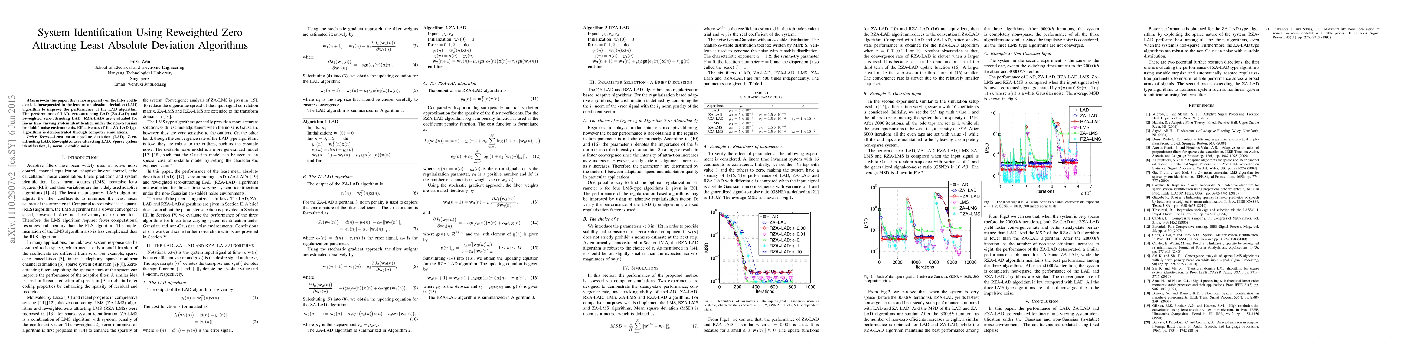 This paper proposes an improved least mean absolute deviation (LAD) algorithm using an l1 norm penalty, termed reweighted zero-attracting least absolute deviation (RZA-LAD), for better system identification performance under non-Gaussian noise. Simulation results show the effectiveness of ZA-LAD type algorithms in linear time-varying systems.