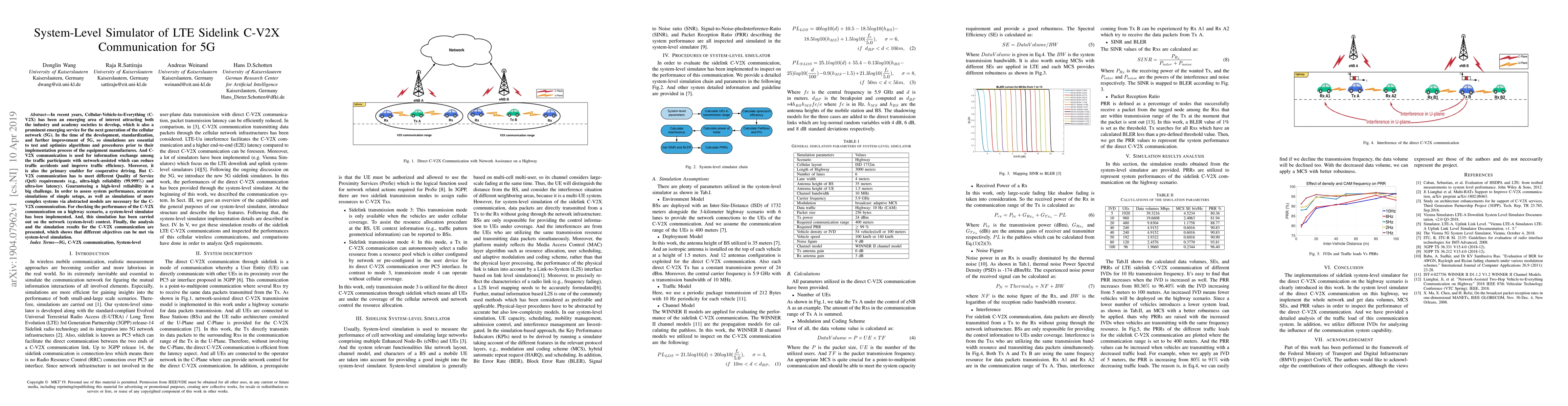 A system-level simulator of LTE Sidelink C-V2X communication for 5G has been developed to assess performance in highway scenarios, demonstrating the feasibility of meeting high-quality service requirements.