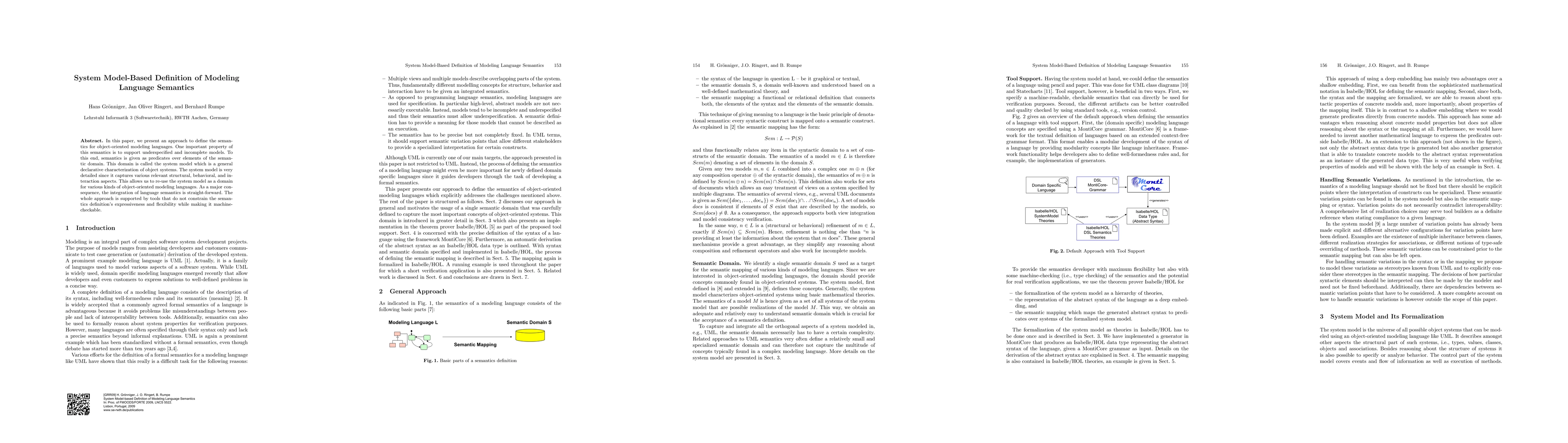 In this paper, we present an approach to define the semantics for object-oriented modeling languages. One important property of this semantics is to support underspecified and incomplete models. To this end, semantics is given as predicates over elements of the semantic domain. This domain is called the system model which is a general declarative characterization of object systems. The system model is very detailed since it captures various relevant structural, behavioral, and interaction aspects. This allows us to re-use the system model as a domain for various kinds of object-oriented modeling languages. As a major consequence the integration of language semantics is straight-forward. The whole approach is supported by tools that do not constrain the semantics definition's expressiveness and flexibility while making it machinecheckable.