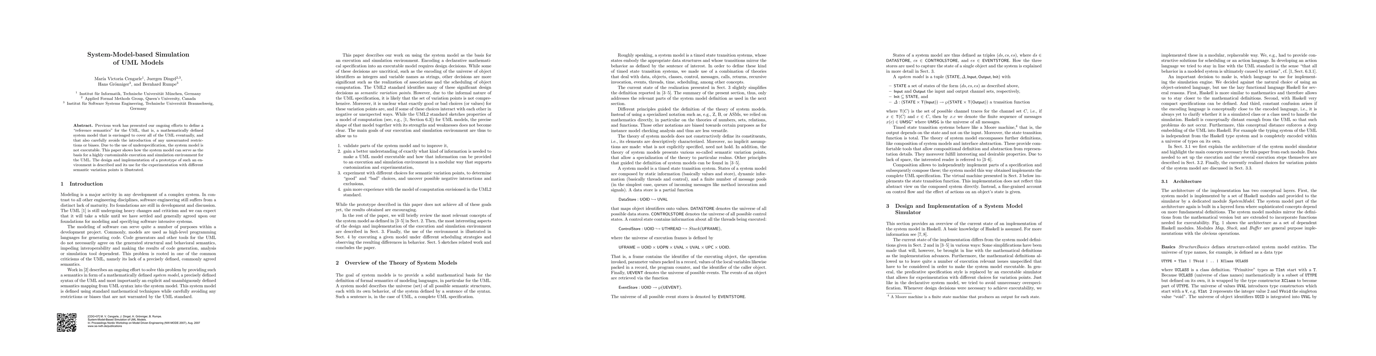 A system-model-based simulation environment for UML models was developed, allowing for customizable execution and experimentation with different semantic variations. The system model serves as a foundation for the environment, enabling researchers to explore various interpretations of UML semantics.
