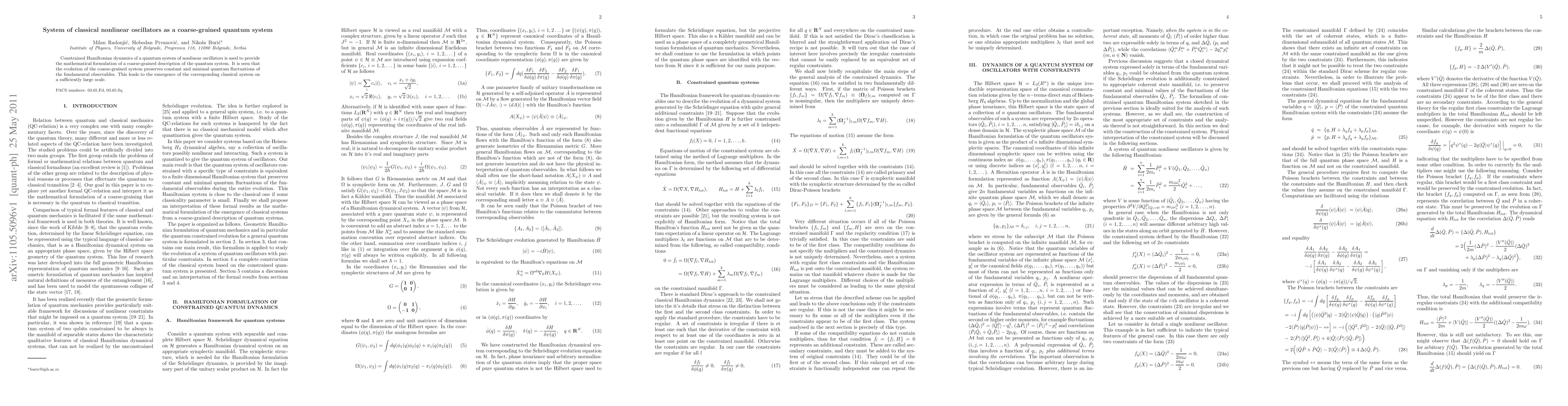 This paper formulates a coarse-grained description of a quantum system of nonlinear oscillators using constrained Hamiltonian dynamics, showing that the evolution preserves minimal quantum fluctuations, thereby leading to the emergence of a corresponding classical system on a large scale.