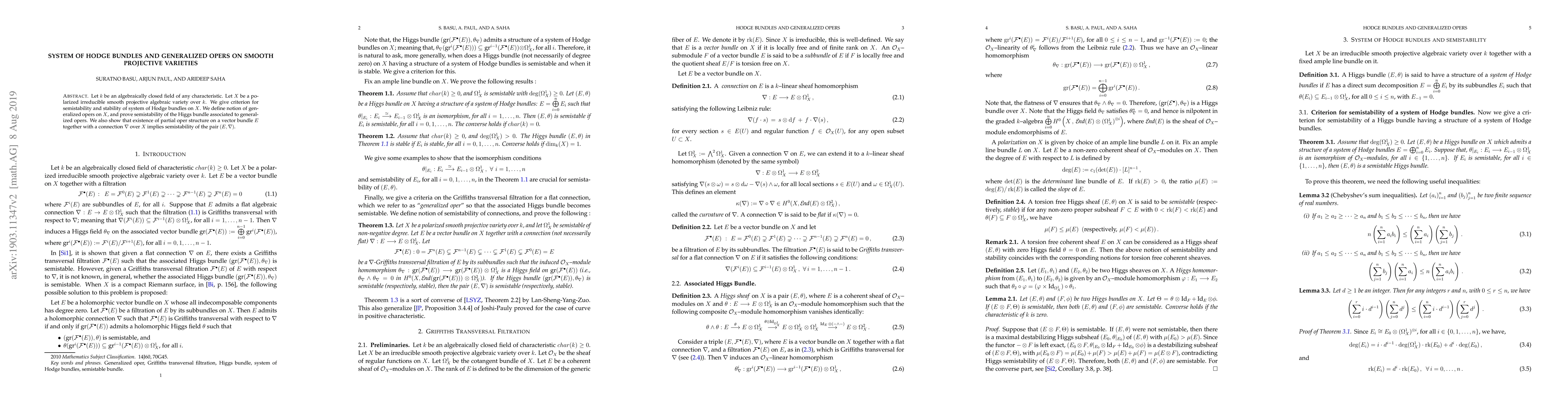 Let $k$ be an algebraically closed field of any characteristic. Let $X$ be a polarized irreducible smooth projective algebraic variety over $k$. We give criterion for semistability and stability of system of Hodge bundles on $X$. We define notion of generalized opers on $X$, and prove semistability of the Higgs bundle associated to generalized opers. We also show that existence of partial oper structure on a vector bundle $E$ together with a connection $\nabla$ over $X$ implies semistability of the pair $(E, \nabla)$.