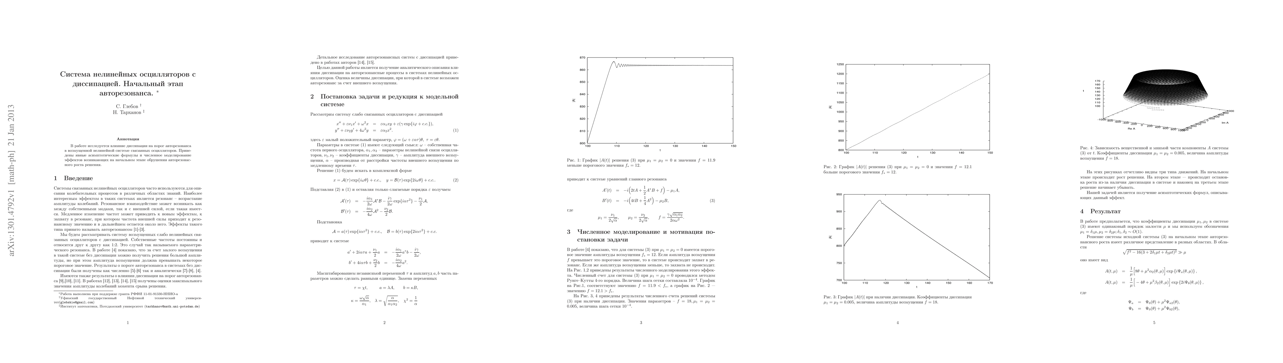 Summary: This paper examines how dissipation affects the autoresonance threshold in a system of nonlinear oscillators, providing exact asymptotic formulas and numerical simulations that reveal the initial interval of autoresonance.