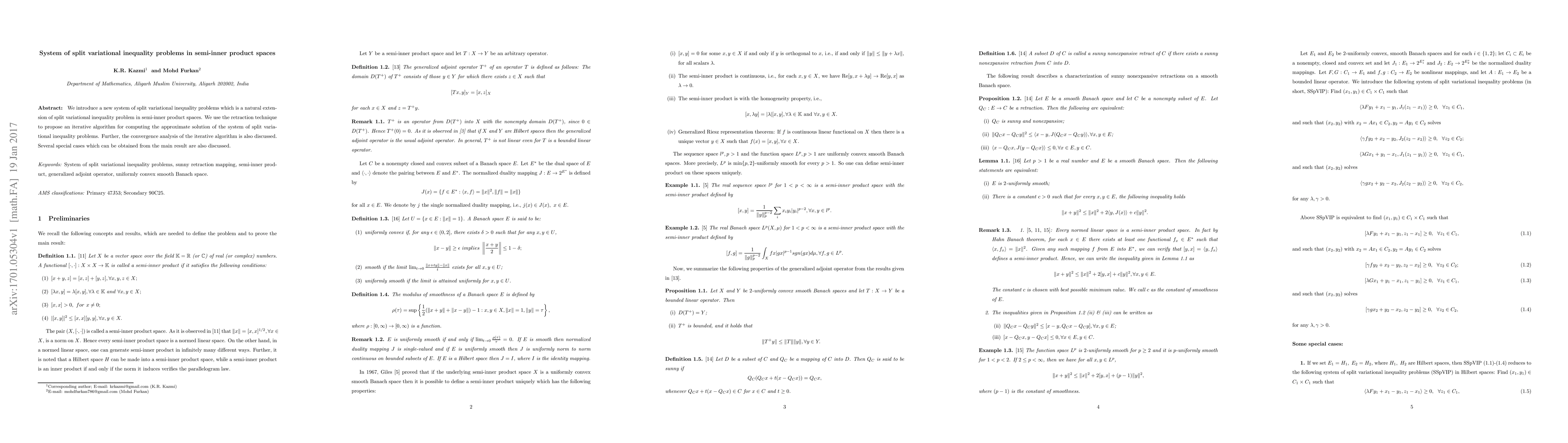This paper extends split variational inequality problems in semi-inner product spaces and proposes an iterative algorithm using retraction techniques for approximate solutions. The convergence of the algorithm is analyzed, and special cases derived from the main result are also discussed.