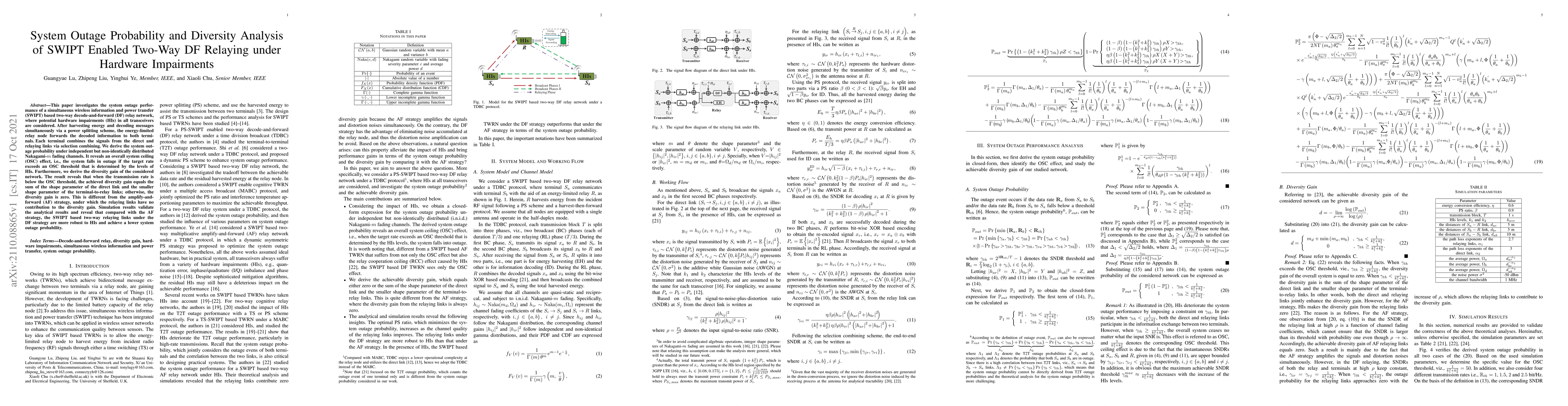 This paper analyzes the outage performance of a SWIPT-enabled two-way DF relay network under hardware impairments, deriving the system outage probability and diversity gain under Nakagami-m fading. It finds that the system exhibits an overall system ceiling effect, and the DF strategy provides better robustness and lower outage probability compared to the AF strategy.