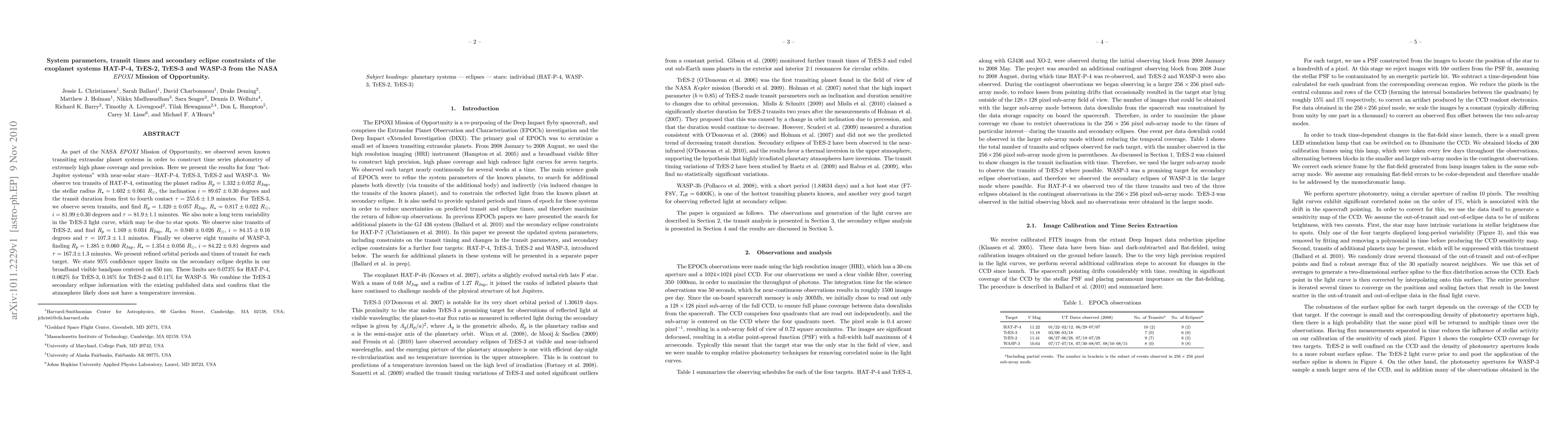 This study, part of the NASA EPOXI Mission of Opportunity, refines system parameters and transit times for four hot-Jupiter exoplanet systems: HAT-P-4, TrES-3, TrES-2, and WASP-3. It provides precise measurements of planetary and stellar radii, inclinations, and transit durations, along with upper limits on secondary eclipse depths, confirming the absence of temperature inversions in TrES-3's atmosphere.