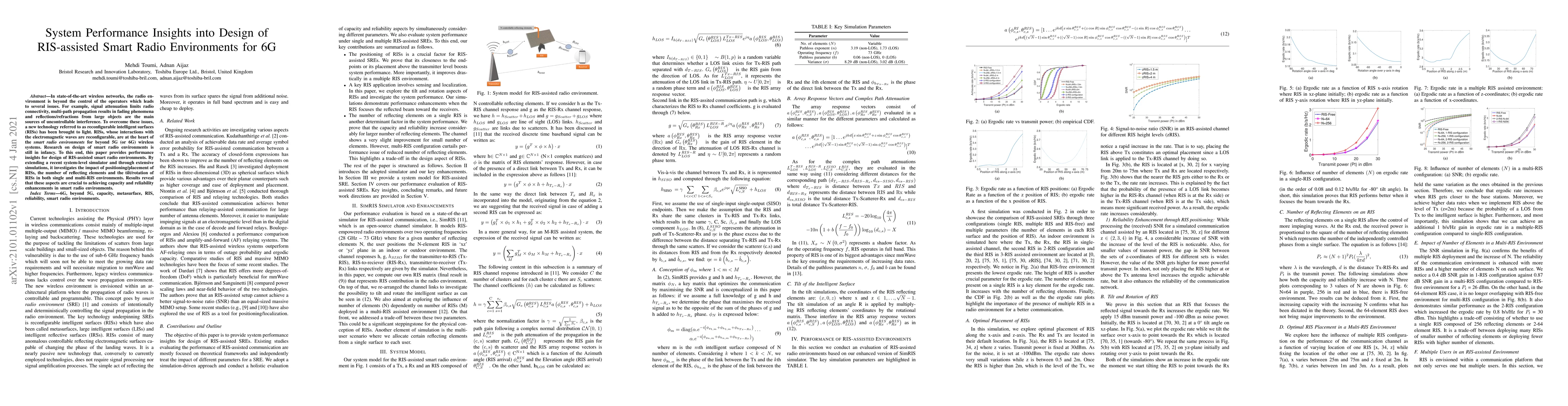 This paper explores the design of RIS-assisted smart radio environments for 6G networks, revealing significant performance insights. It highlights the impact of RIS positioning, number of reflecting elements, and orientation on capacity and reliability enhancements through extensive simulations.