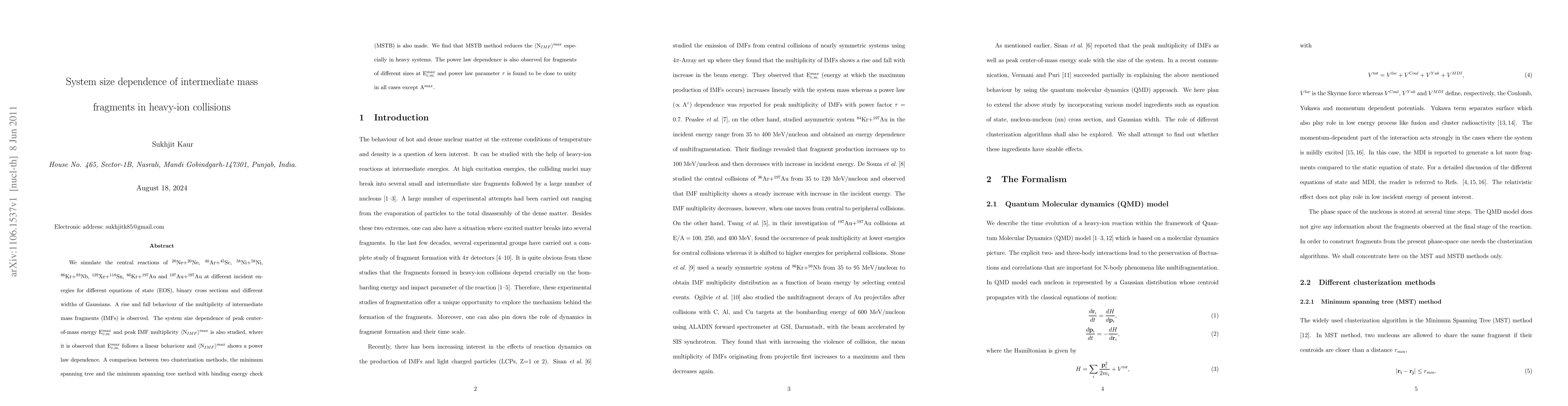 This research paper investigates the formation of intermediate mass fragments in heavy-ion collisions at different energies, system sizes, and equations of state, revealing a rise and fall behavior of fragment multiplicity and a power law dependence on energy.