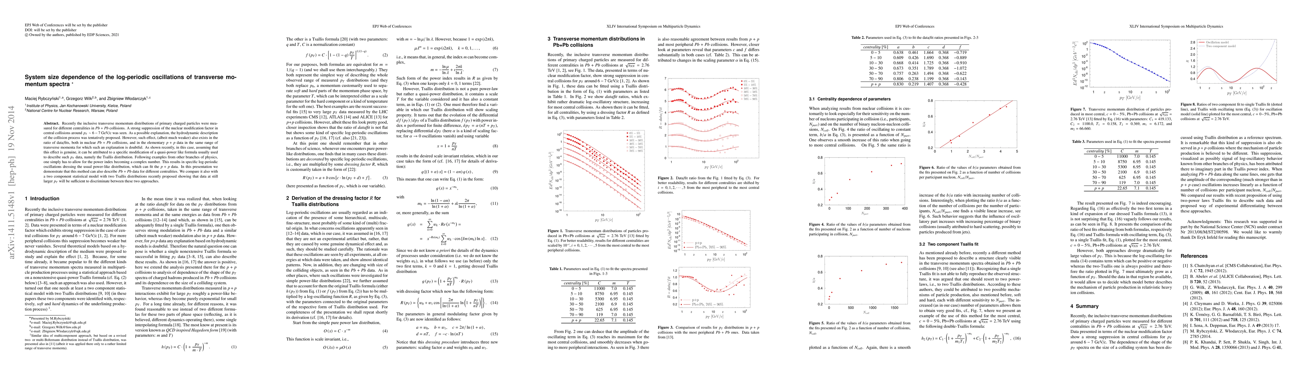 Recently the inclusive transverse momentum distributions of primary charged particles were measured for different centralities in $Pb+Pb$ collisions. A strong suppression of the nuclear modification factor in central collisions around $p_T \sim 6-7$ GeV/c was seen. As a possible explanation, the hydrodynamic description of the collision process was tentatively proposed. However, such effect, (albeit much weaker) also exists in the ratio of data/fits, both in nuclear $Pb+Pb$ collisions, and in the elementary $p+p$ data in the same range of transverse momenta for which such an explanation is doubtful. As shown recently, in this case, assuming that this effect is genuine, it can be attributed to a specific modification of a quasi-power like formula usually used to describe such $p_T$ data, namely the Tsallis distribution. Following examples from other branches of physics, one simply has to allow for the power index becoming a complex number. This results in specific log-periodic oscillations dressing the usual power-like distribution, which can fit the $p+p$ data. In this presentation we demonstrate that this method can also describe $Pb+Pb$ data for different centralities. We compare it also with a two component statistical model with two Tsallis distributions recently proposed showing that data at still larger $p_T$ will be sufficient to discriminate between these two approaches.