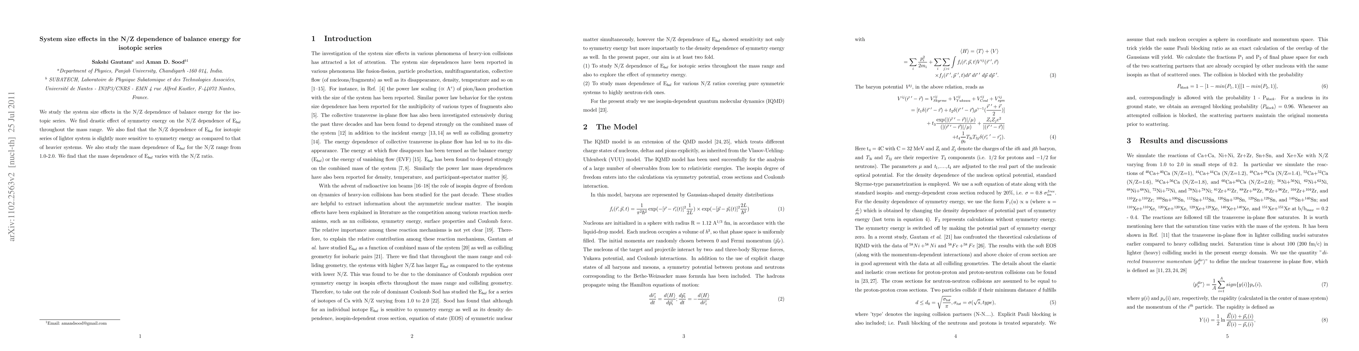 Researchers studied how balance energy in isotopic series changes with system size and found that symmetry energy has a drastic effect on this change. System size affects the N/Z dependence of balance energy differently for lighter and heavier systems.