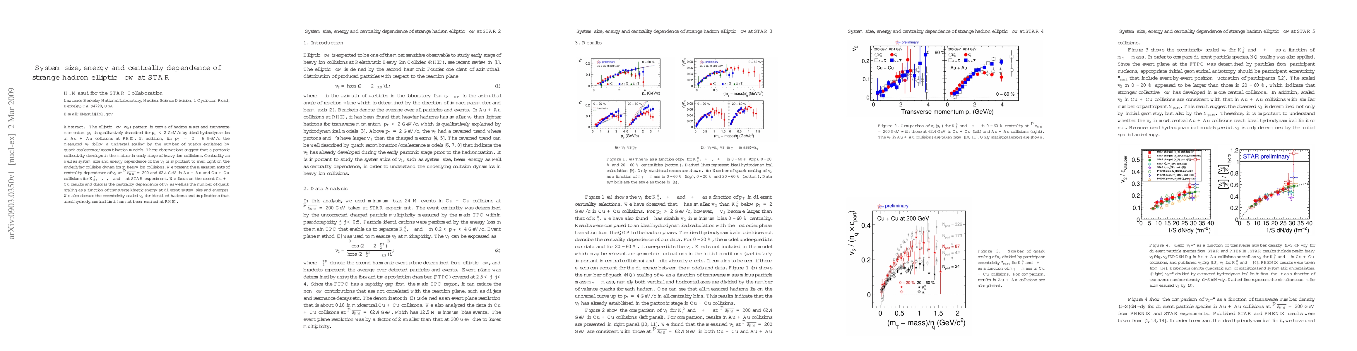 This paper investigates the elliptic flow (v2) of strange hadrons in heavy ion collisions at STAR, showing that v2 patterns suggest partonic collectivity in early stages. The study focuses on centrality dependence of v2 for various hadrons across different collision energies and system sizes, indicating that ideal hydrodynamical behavior has not yet been fully achieved at RHIC.