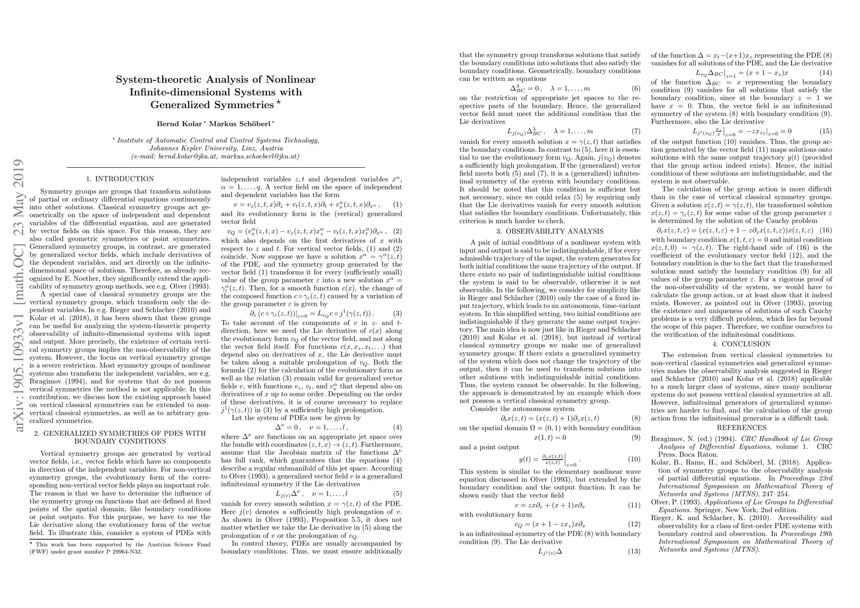 Symmetry groups allow to transform solutions of differential equations continuously into other solutions. This property can be used for the observability analysis of infinite-dimensional systems with input and output. In this contribution, we extend an existing approach, which is based on vertical classical symmetries, to non-vertical classical symmetries and generalized symmetries. This makes the approach applicable to a much larger class of systems, since many nonlinear systems do not possess any vertical classical symmetries.