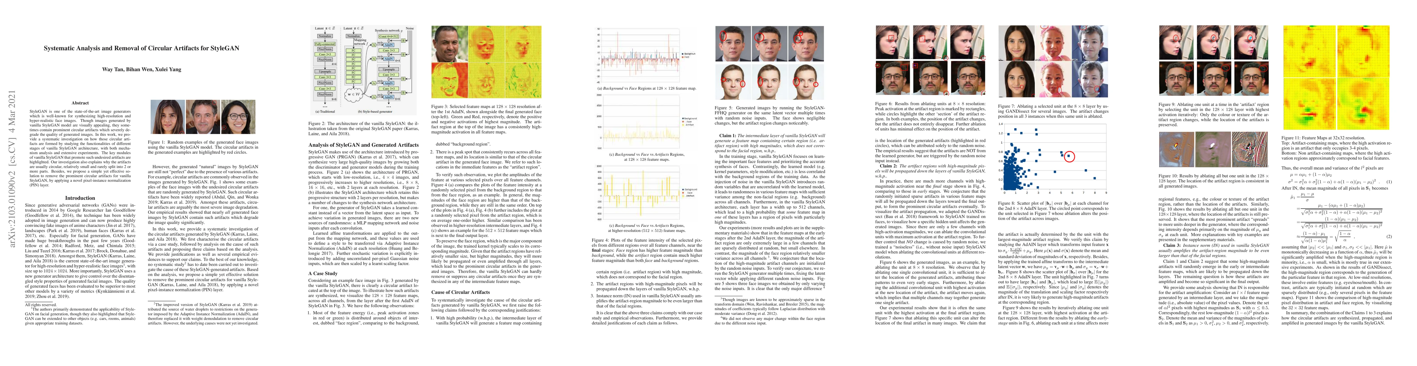This paper investigates the formation of circular artifacts in StyleGAN-generated images and identifies the key modules responsible. It proposes a novel pixel-instance normalization (PIN) layer to effectively remove these artifacts, enhancing image quality.