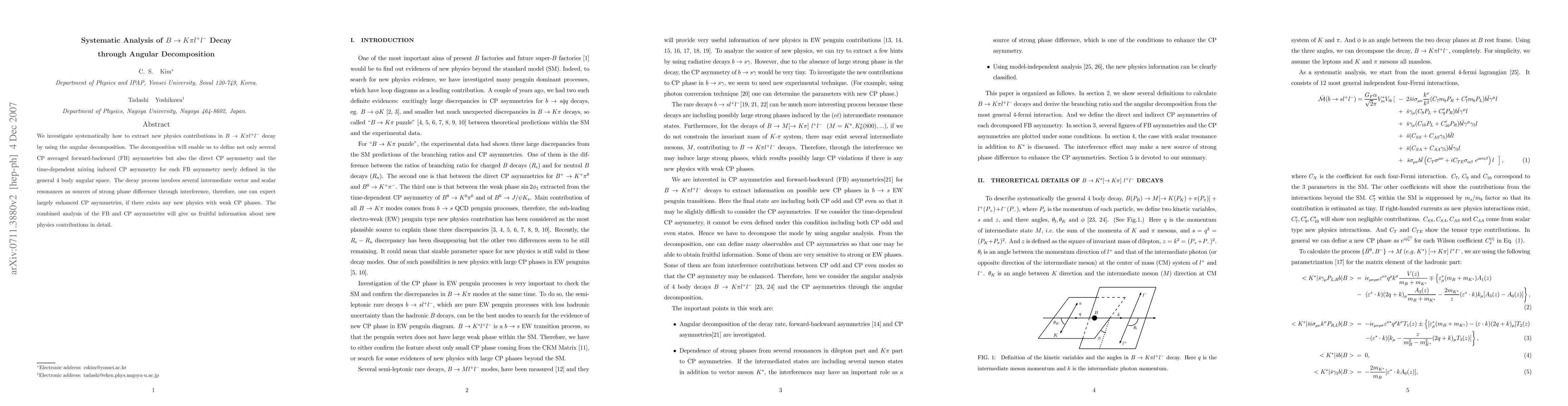 Researchers developed a method to analyze B --> K pi l^+ l^- decay using angular decomposition, enabling the discovery of new physics contributions through CP asymmetries in this process.