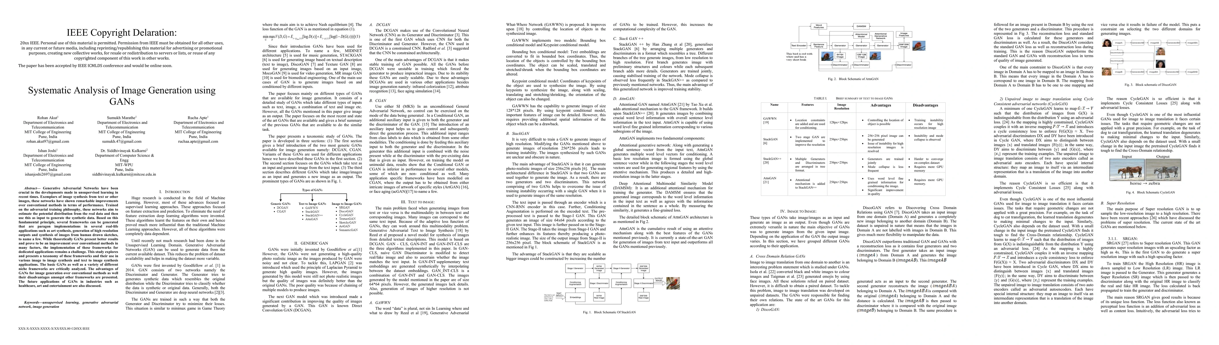 Generative Adversarial Networks have been crucial in the developments made in unsupervised learning in recent times. Exemplars of image synthesis from text or other images, these networks have shown remarkable improvements over conventional methods in terms of performance. Trained on the adversarial training philosophy, these networks aim to estimate the potential distribution from the real data and then use this as input to generate the synthetic data. Based on this fundamental principle, several frameworks can be generated that are paragon implementations in several real-life applications such as art synthesis, generation of high resolution outputs and synthesis of images from human drawn sketches, to name a few. While theoretically GANs present better results and prove to be an improvement over conventional methods in many factors, the implementation of these frameworks for dedicated applications remains a challenge. This study explores and presents a taxonomy of these frameworks and their use in various image to image synthesis and text to image synthesis applications. The basic GANs, as well as a variety of different niche frameworks, are critically analyzed. The advantages of GANs for image generation over conventional methods as well their disadvantages amongst other frameworks are presented. The future applications of GANs in industries such as healthcare, art and entertainment are also discussed.