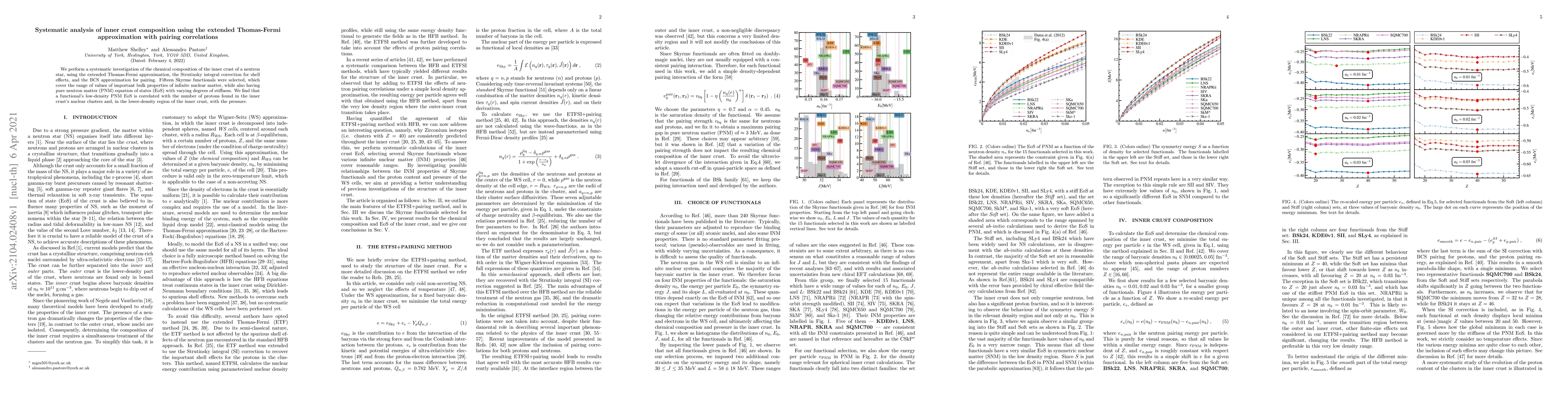 This paper systematically analyzes the inner crust composition of neutron stars using the extended Thomas-Fermi approximation, Strutinsky correction, and BCS pairing. It finds a correlation between the low-density pure neutron matter equation of state and the number of protons in nuclear clusters, as well as the pressure in the inner crust.