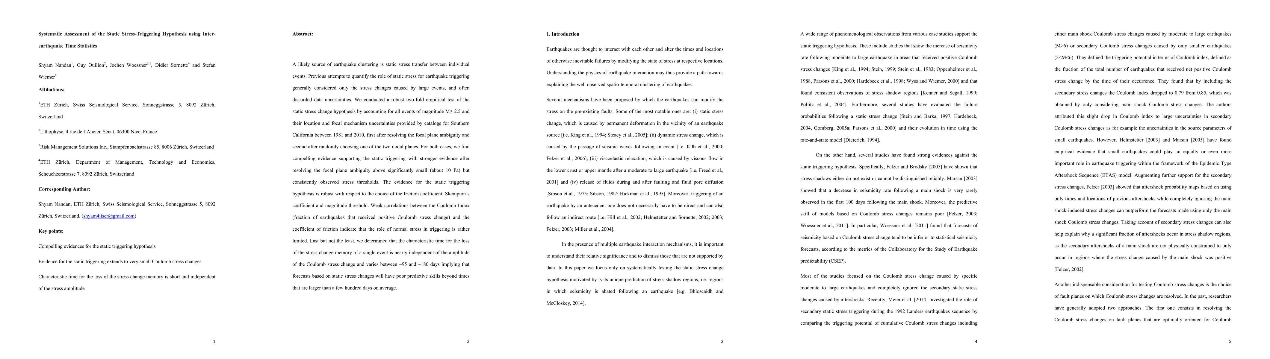 This study provides robust evidence supporting the static stress triggering hypothesis for earthquakes in Southern California, considering all events of magnitude M>=2.5 and their uncertainties. The findings suggest that static stress transfer is significant above small stress thresholds, but forecasts based on this mechanism have limited predictive power beyond a few hundred days.