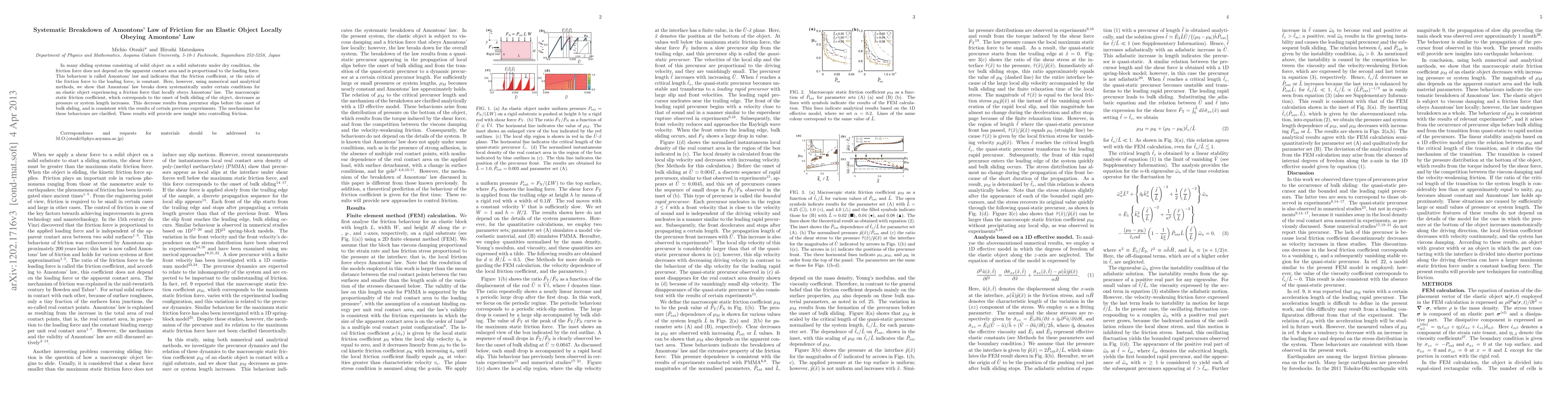 This paper systematically investigates the breakdown of Amontons' law of friction for an elastic object, revealing that the macroscopic static friction coefficient decreases with increased pressure or system length due to precursor slips. This insight provides new understanding of friction control mechanisms.