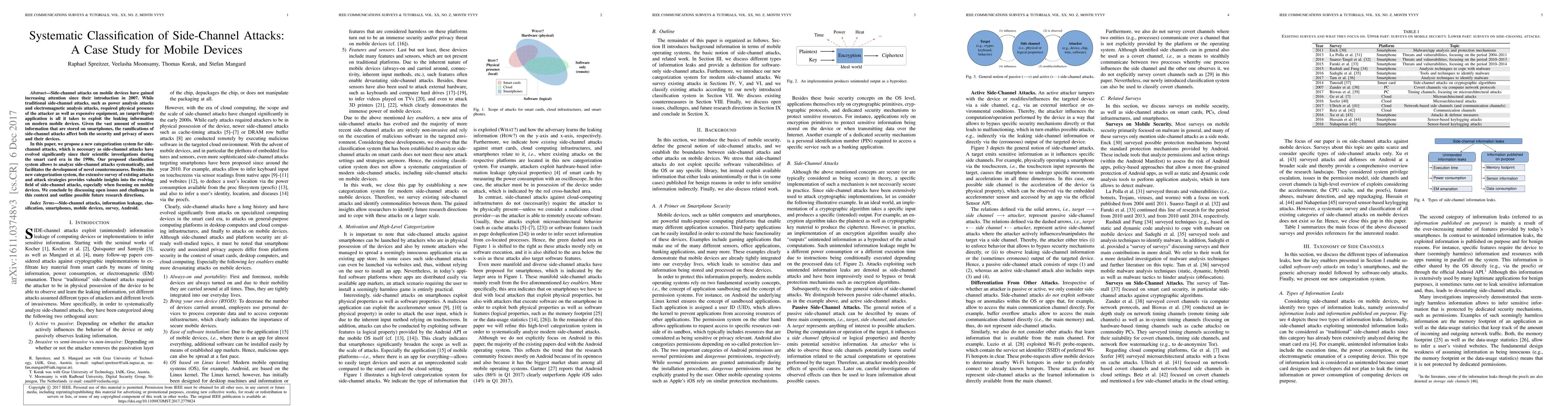 This paper proposes a new systematic classification system for side-channel attacks targeting mobile devices, addressing the evolution of these attacks since the 1990s. It provides insights into existing attack strategies and outlines future research directions to enhance device security and privacy.
