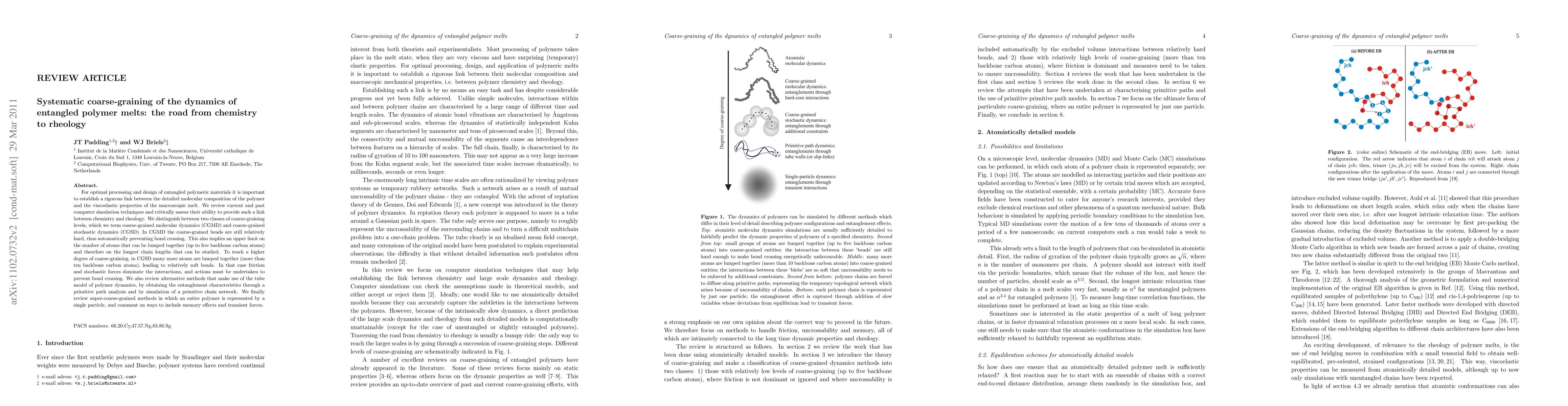 This paper reviews methods for systematically coarse-graining entangled polymer melts, linking molecular composition to macroscopic viscoelastic properties. It distinguishes between coarse-grained molecular dynamics and coarse-grained stochastic dynamics, highlighting their respective advantages and limitations in bridging chemistry and rheology.